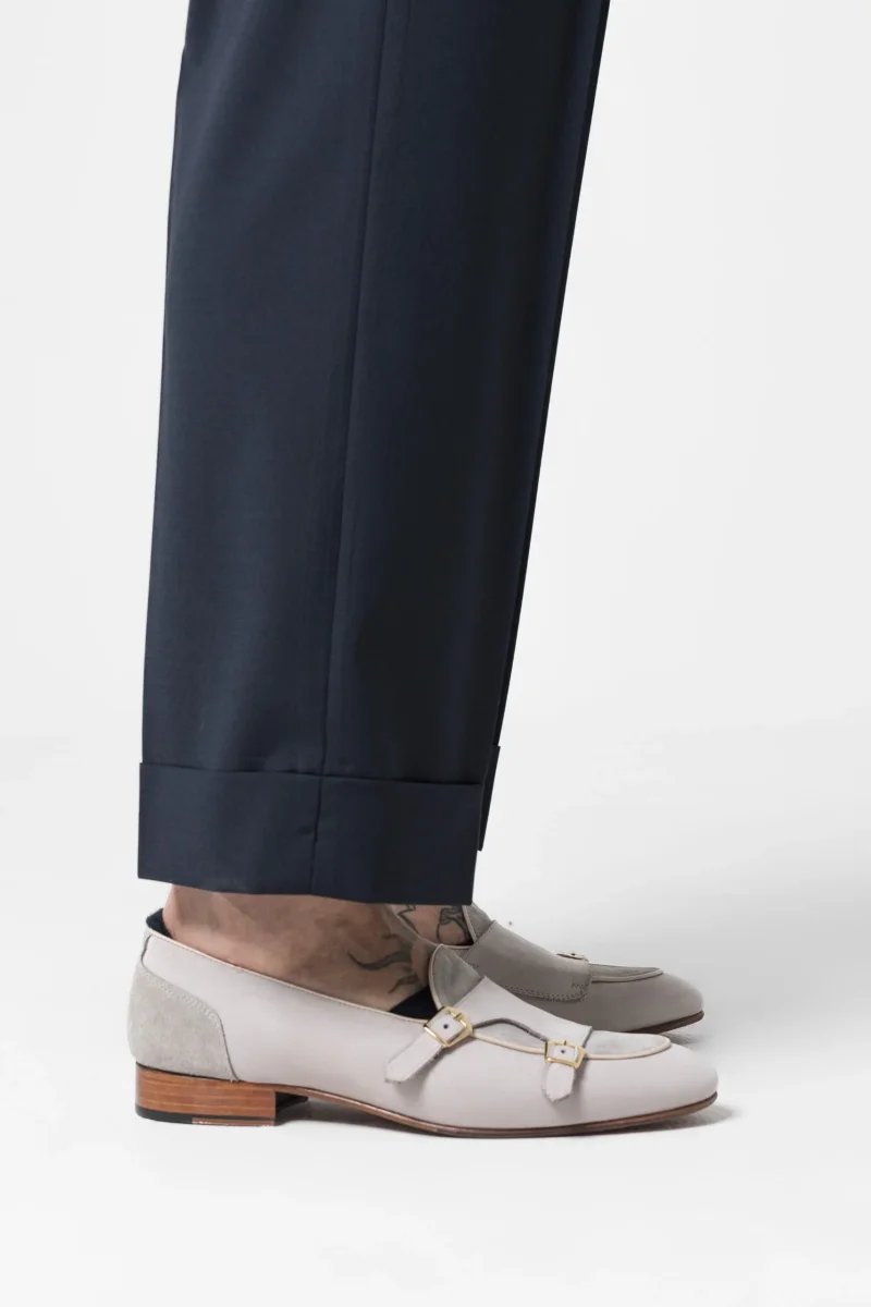 Pantalone Semi-Sartoriale in Fresco Lana – Fondo Ampio, Fibbie Laterali e Risvolto da 5 cm