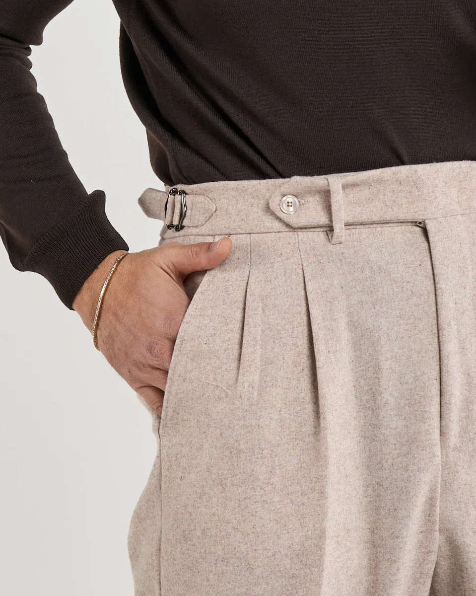 Pantalone Fondo Ampio e Fibbie Laterali in Flanella Rosino Megève
