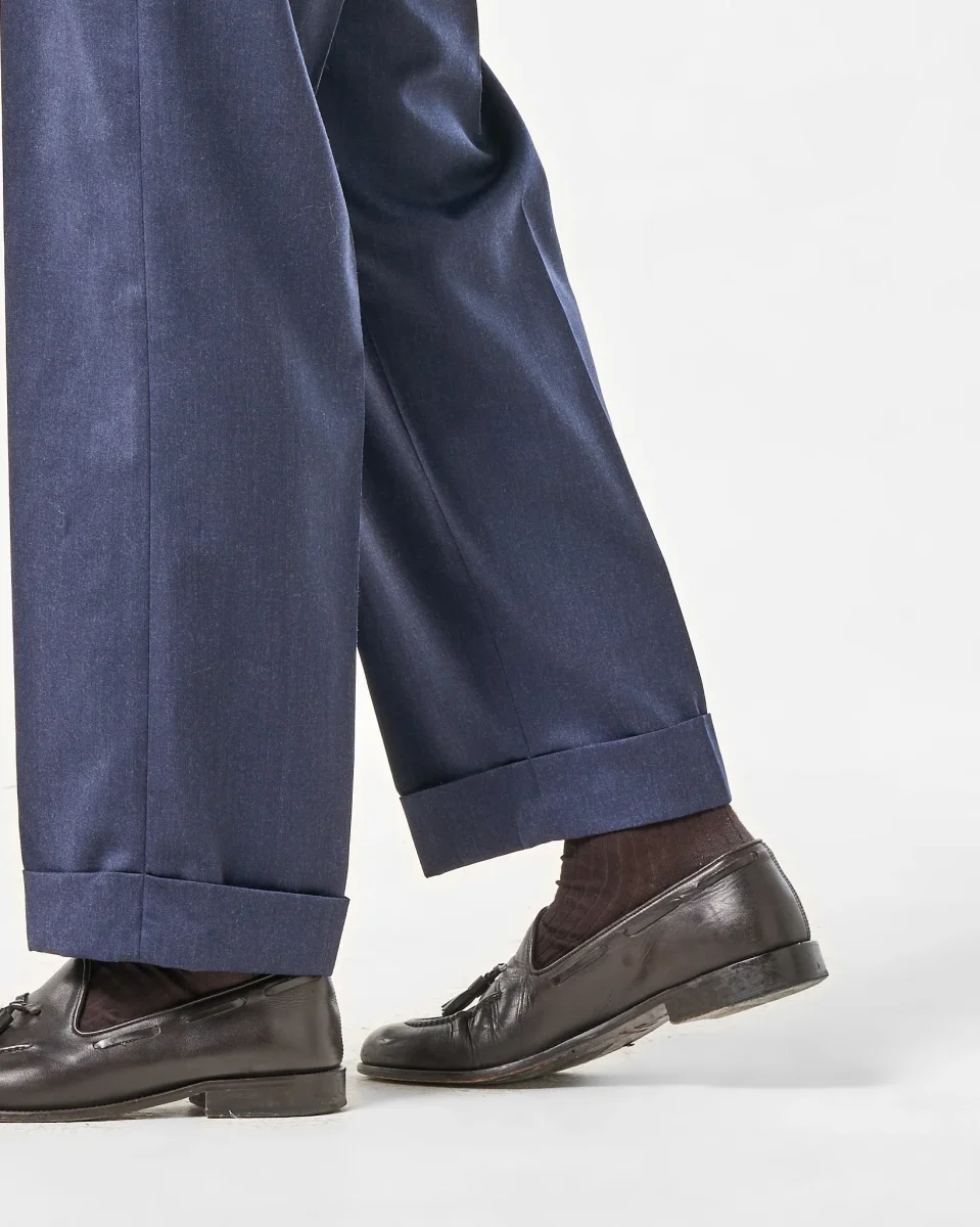 Pantalone Semi-Sartoriale in Fresco Lana – Fondo Ampio, Fibbie Laterali e Risvolto da 5 cm