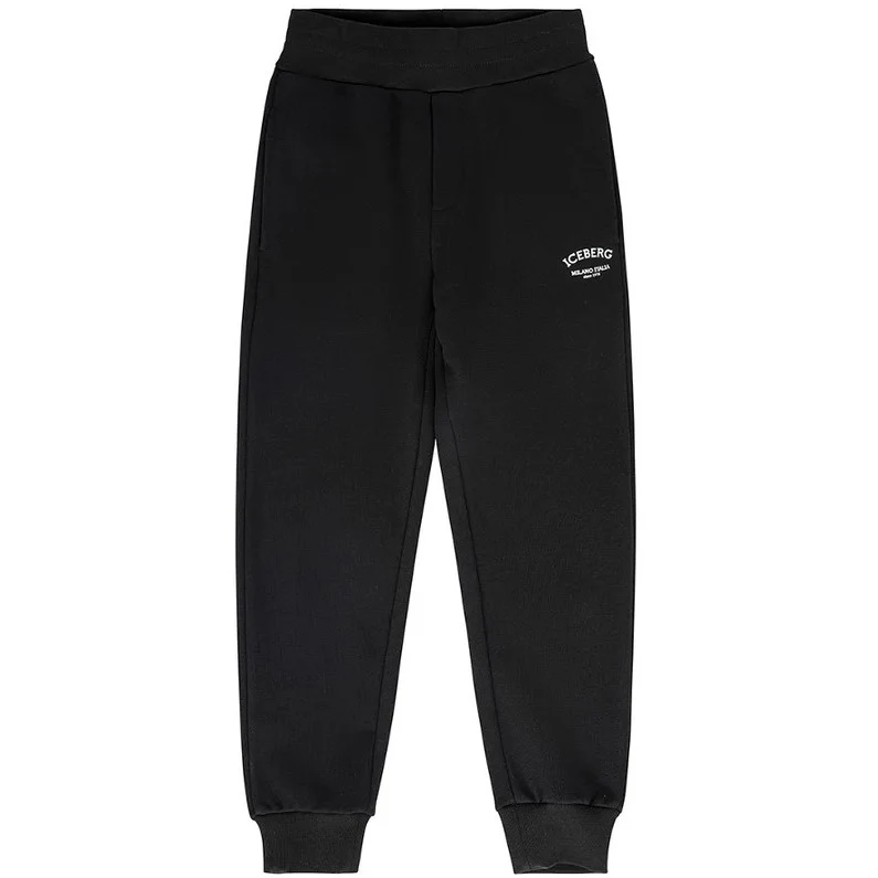 Pantalone ICEBERG Milano in cotone garzato con logo stampato , elastico in vita e laccetto regolabile.