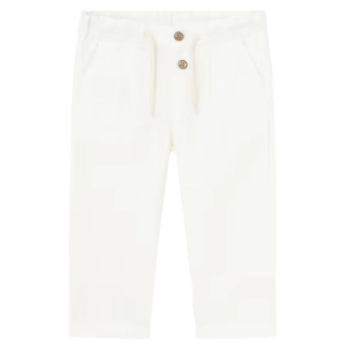 Pantalone MAYORAL in misto lino con tasche laterali, chiusura con bottone logato, laccetto regolabile in vita, tasche sul retro, regoli in vita.