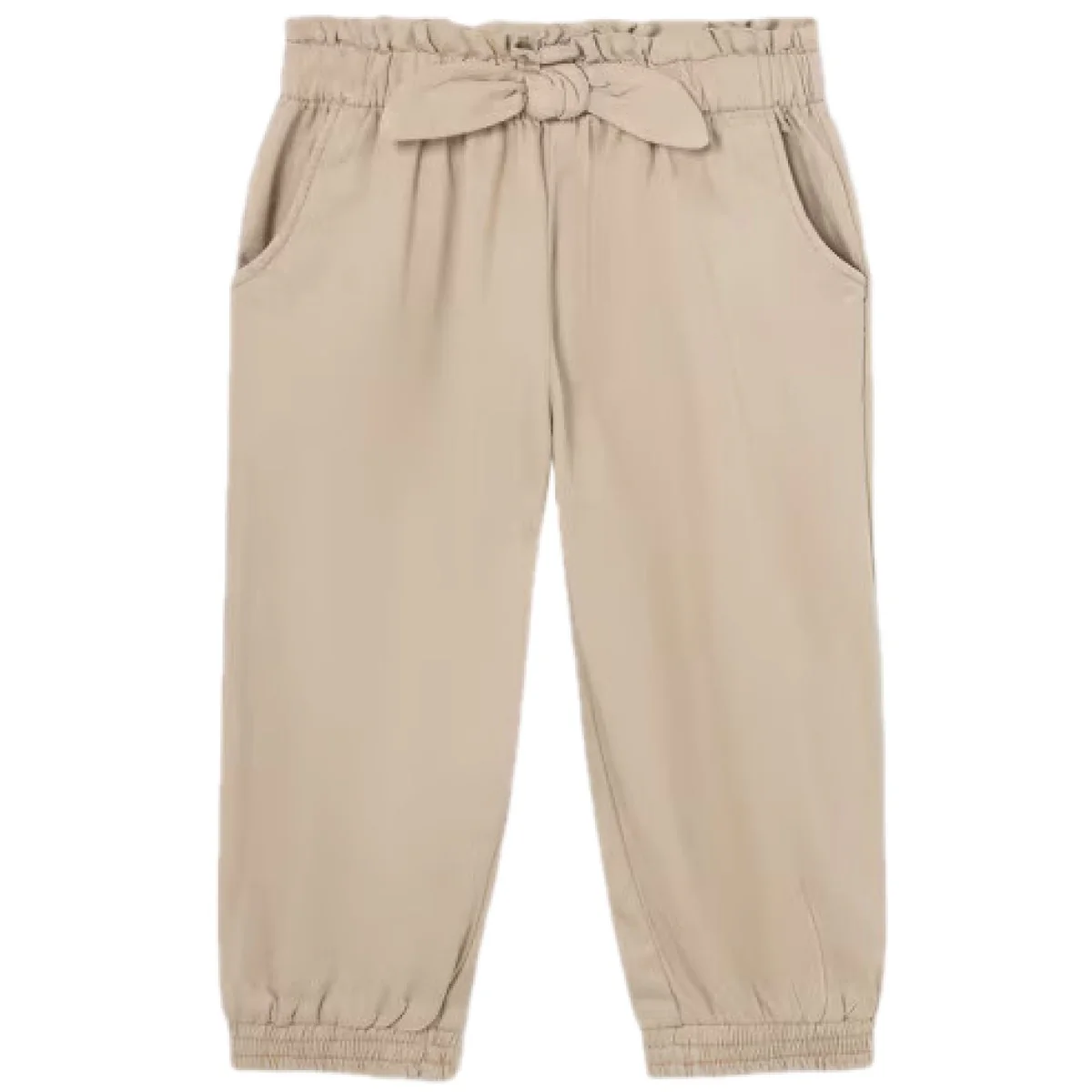 Pantalone MAYORAL con tasche laterali, elastico in vita e alle caviglie, finto nodo applicato in vita.
