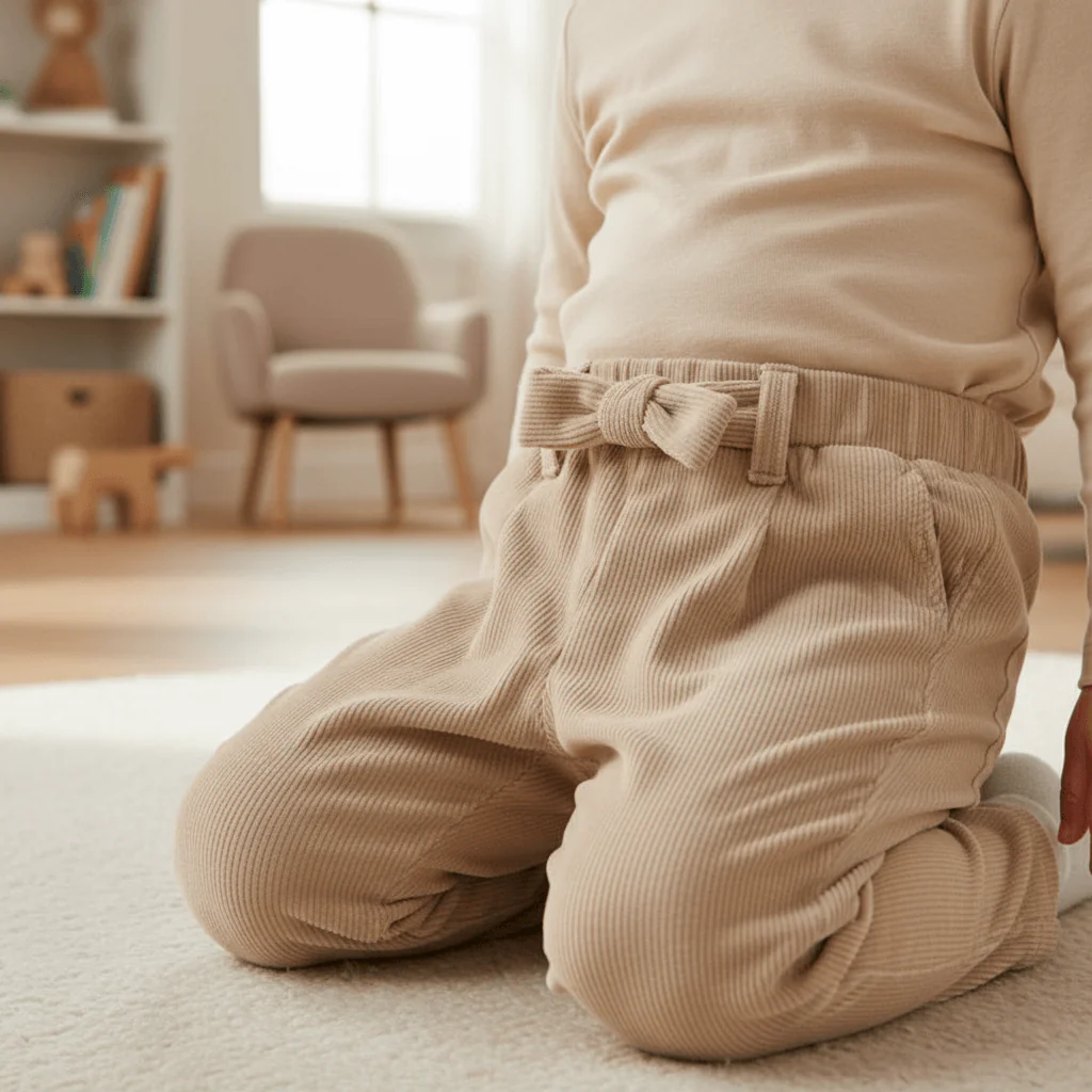 Pantalone MAYORAL per neonata. Elastico in vita. Caldo tessuto comodo e morbido. Modello con pinces. Elementi decorativi: fiocco.