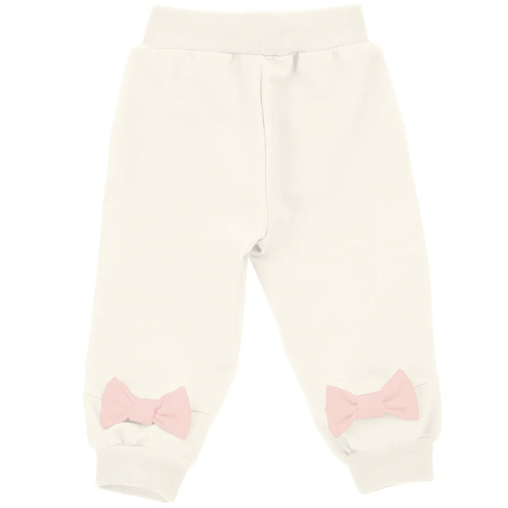 Pantalone MONNALISA in felpa con interno garzato logo ricamato tasche laterali fiocchetti applicati sul retro gamba in colore a contrasto elastico applicato in vita e alla caviglia.