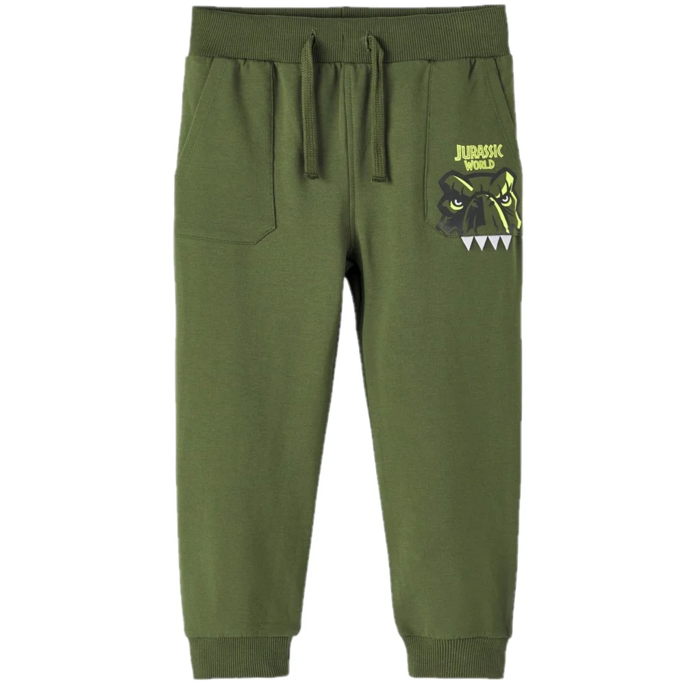 Pantalone NAME.IT JURASSIC WORLD in cotone con stampa regoli in vita taschini laterali elastico in vita e laccetto.
