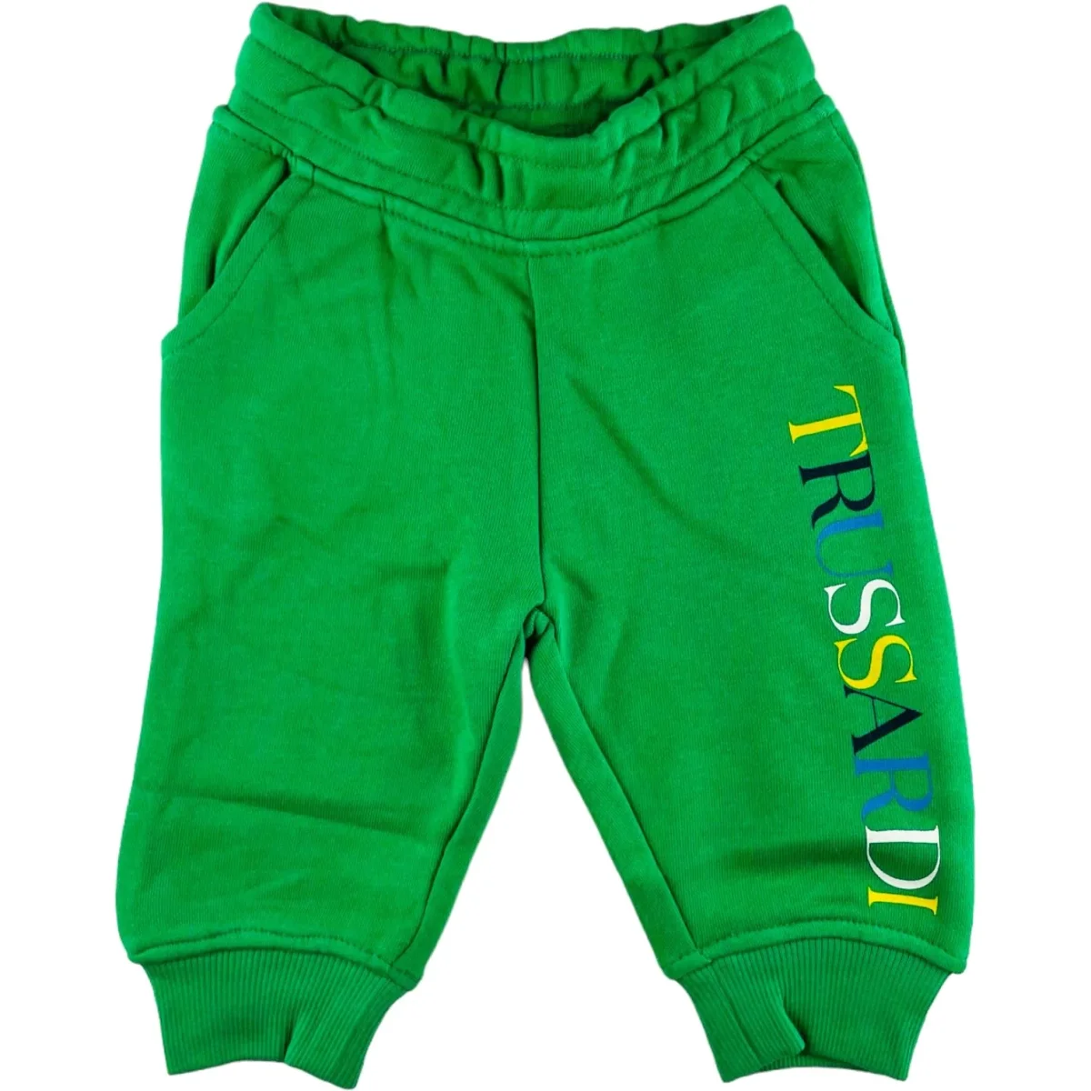 Pantalone TRUSSARDI in felpa di cotone garzato con stampa multicolor a contrasto.
