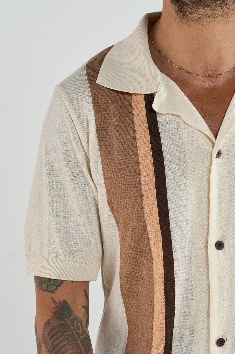 Ogni outfit deve essere un connubio di stile e comfort e la nostra polo è in grado di adattarsi alle diverse necessità e far risplendere ogni tuo look . Questa versione camicia in maglia a righe a contrasto a maniche corte in cotone è pensata per sentirsi protagonista in ogni momento. Un capo alla moda, in grado di avvolgerti con una sensazione di comodità e freschezza impareggiabile.
