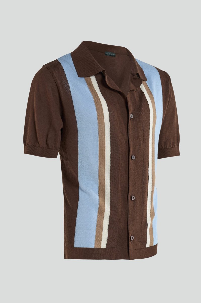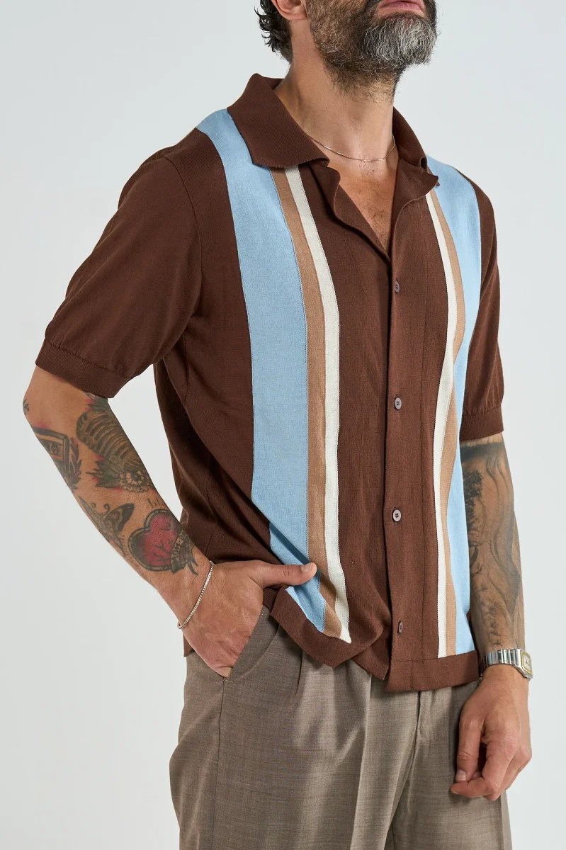 Polo Camicia Moro con Righe a Contrasto