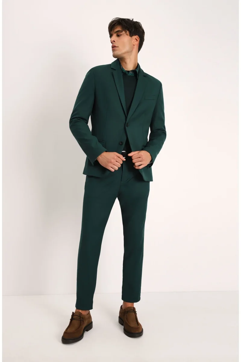 Uno dei nostri modelli pi� venduti. Pantalone modello chino in tessuto tecnico misto viscosa. Vita regolare con cinturino fisso con passanti, chiusura con zip e bottone. Tasche america laterali, tasche a filetto posteriori. Gamba slim e fondo stretto con risvolto. Taglia in foto 46. Composizione tessuto 66 % poliestere, 31 % viscosa, 3 % elastan. Completa il look con la giacca abbinata.