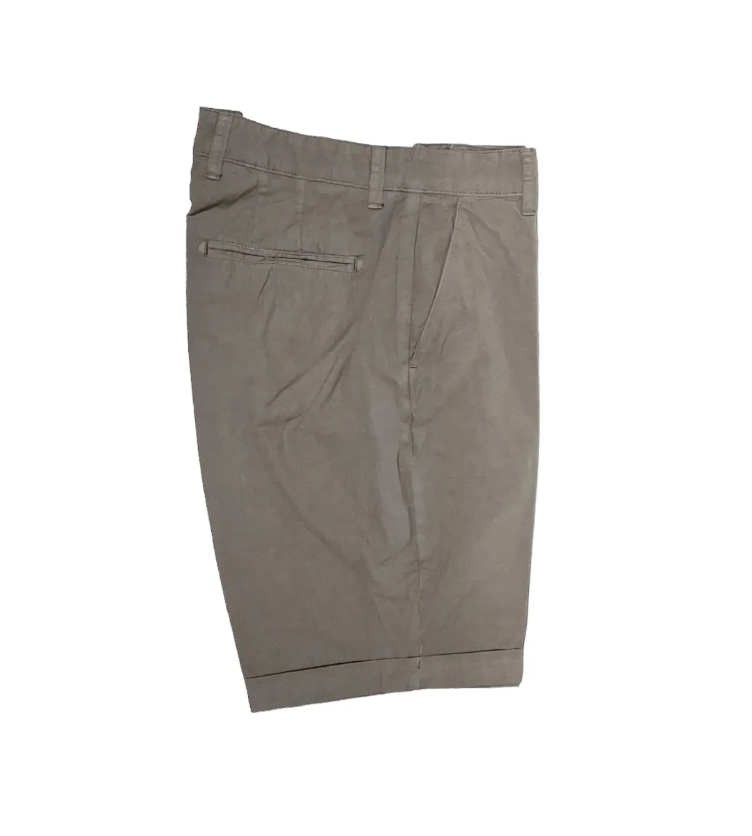 Bermuda basico in tessuto leggero 100% cotone. Vita regolare con passanti, chiusura con zip e bottone. Tasche a filo laterali, taschino posteriore. Vestibilità regolare. Fondo con risvolto 2 cm.