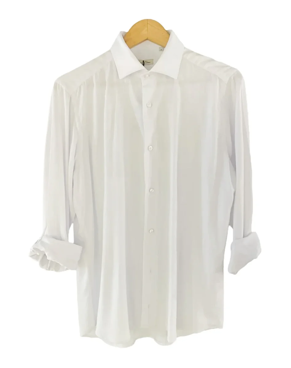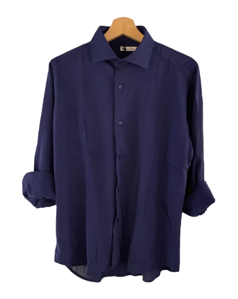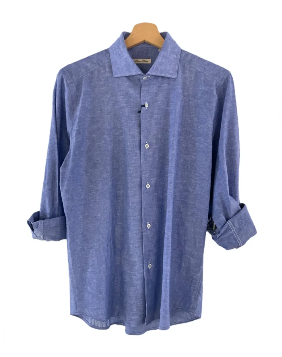 Camicia in morbido tessuto puro lino. Colletto piccolo, chiusura con bottoni classici. Maniche lunghe con polsini chiusi da bottoni, pattina sul polso. Vestibilità dritta.