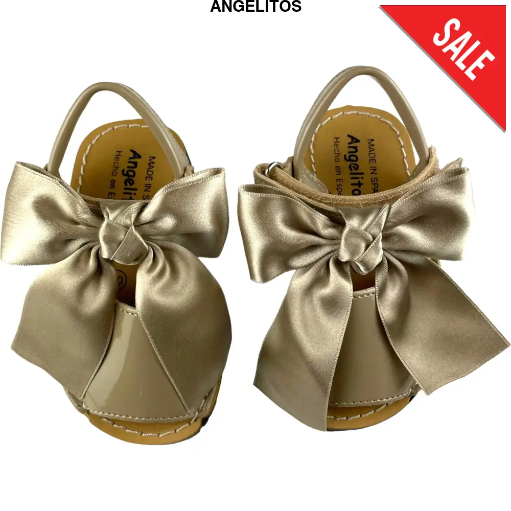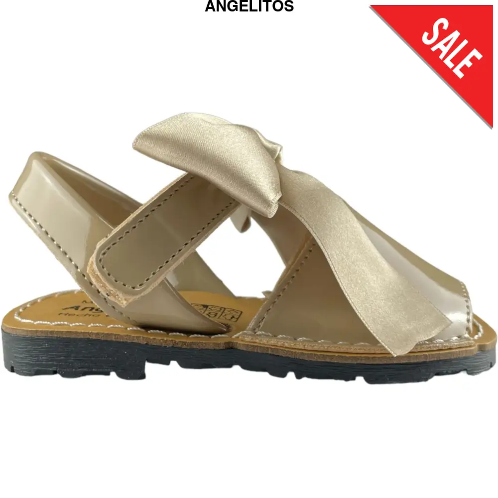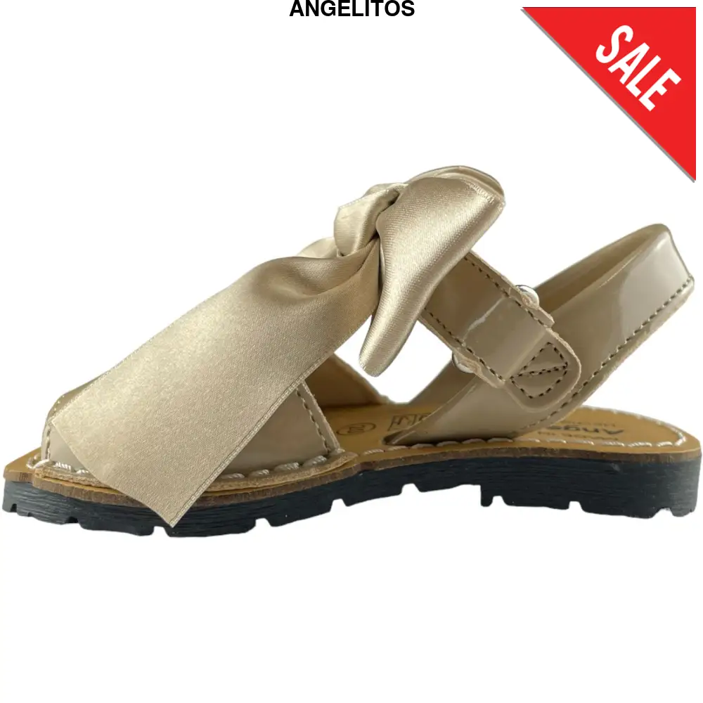Sandalo ANGELITOS con fiocco in raso applicato chiusura con velcro regolabile. sottopiede in vera pelle. fondo in gomma antiscivolo. MADE IN SPAIN