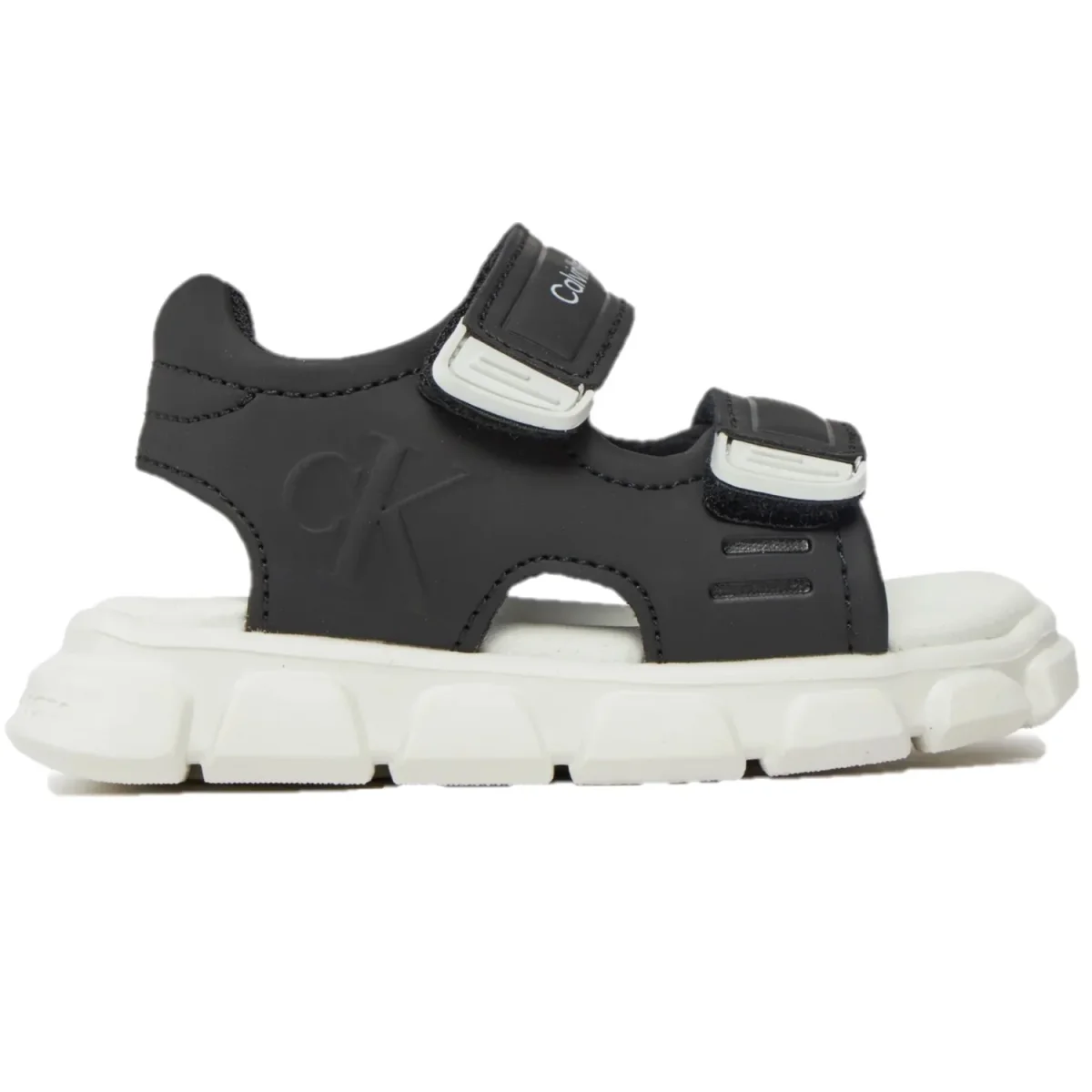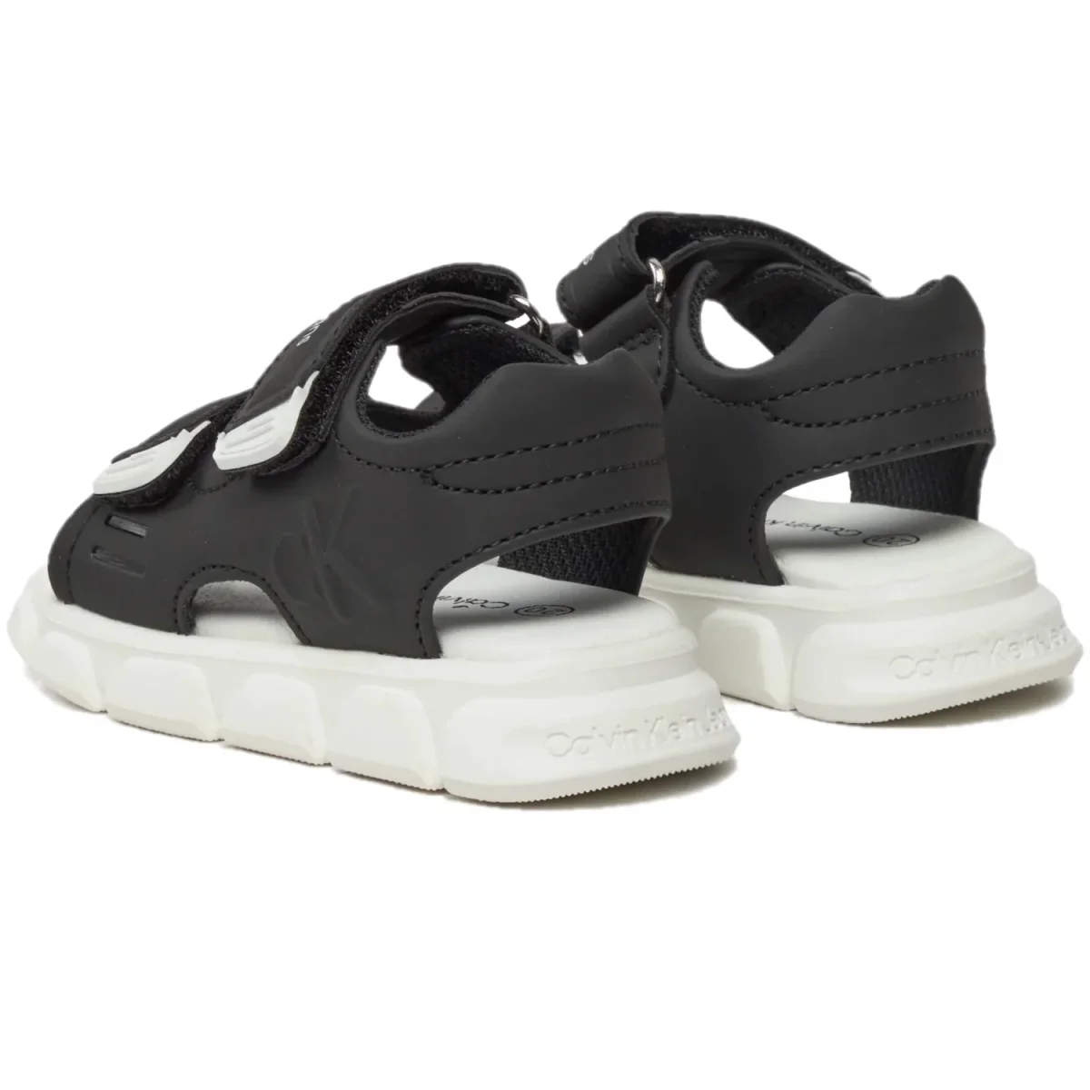 Sandali CALVIN KLEIN neri con loghi a rilievo. chiusura con doppio strappo regolabile. fondo in gomma antiscivolo.