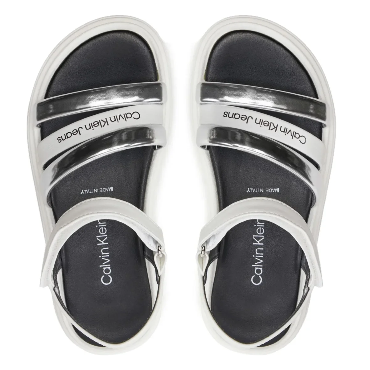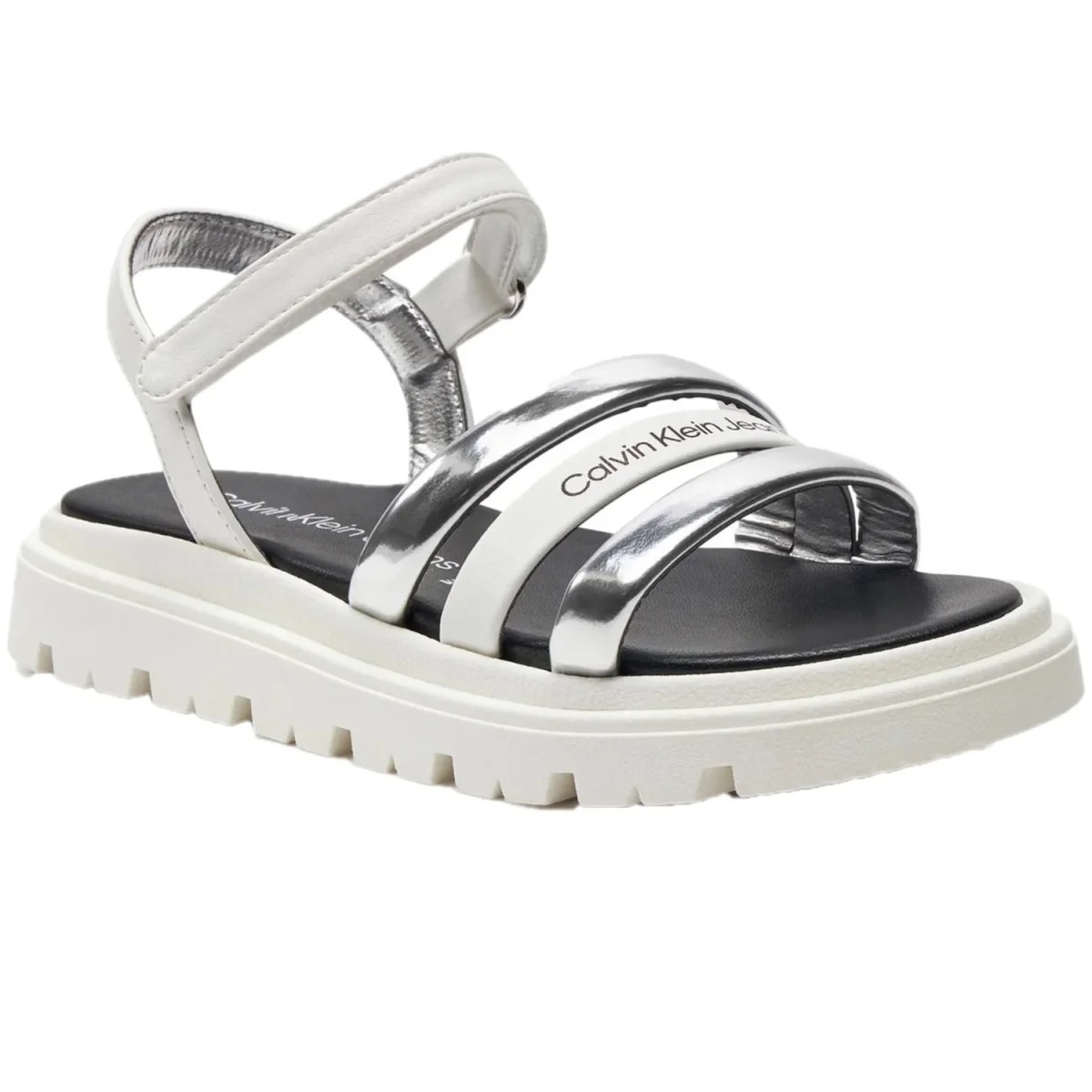 Sandali CALVIN KLEIN per bambina bianchi con inserti argento. sottopiede in vera pelle. fondo in gomma antiscivolo. MADE IN ITALY.