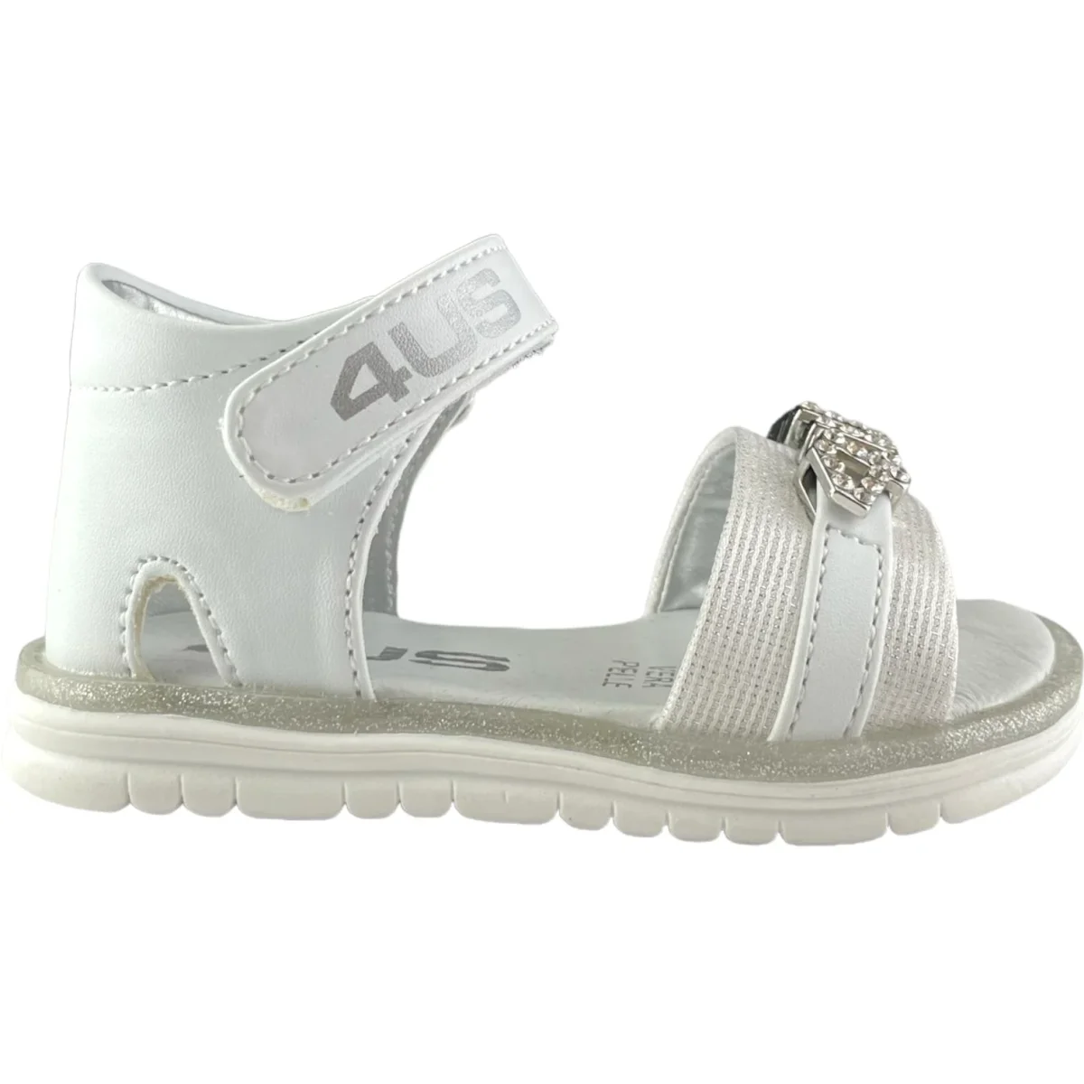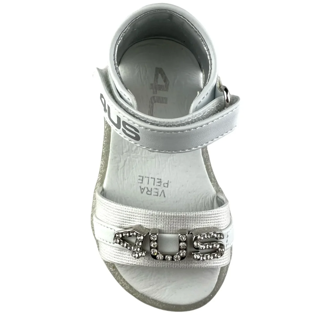 Sandali CESARE PACIOTTI chiusura con doppio strappo regolabile, sottopiede in vera pelle. fondo in gomma antiscivolo. applicazione in metallo con strass.