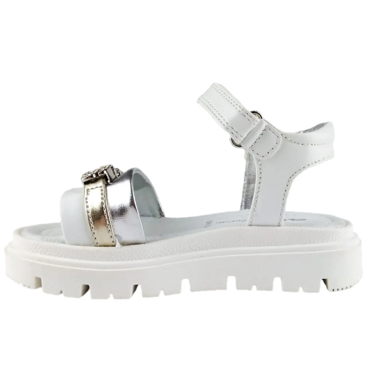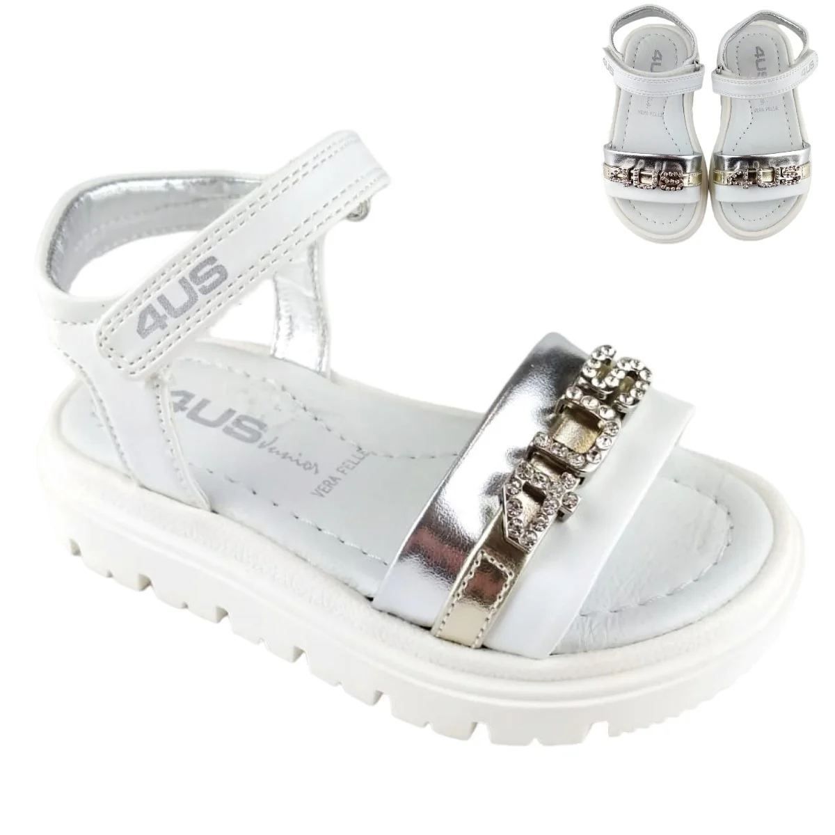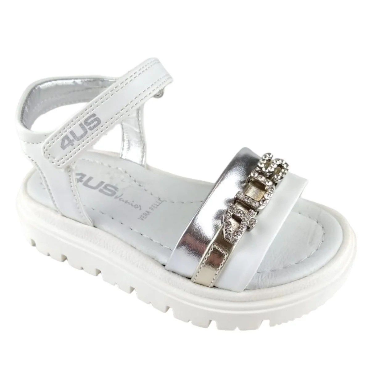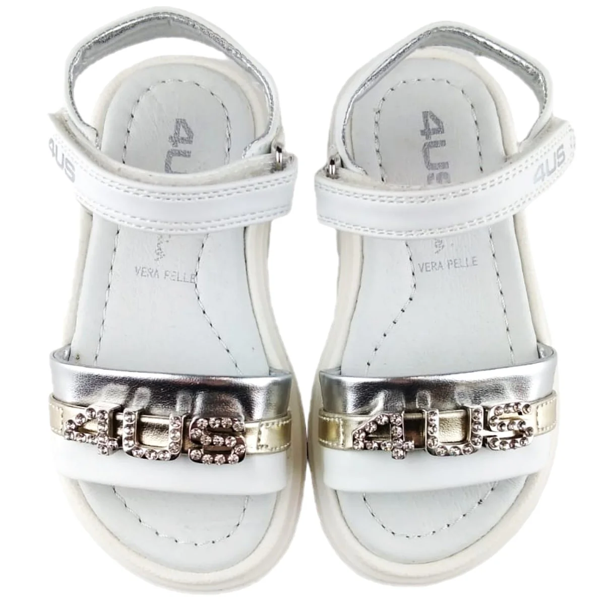 SANDALI CESARE PACIOTTI in ecopelle con chiusura velcro ,fascia con logo in metallo e strass applicati ,sottopiede in vera pelle ,fondo leggero in gomma alto circa 2cm.