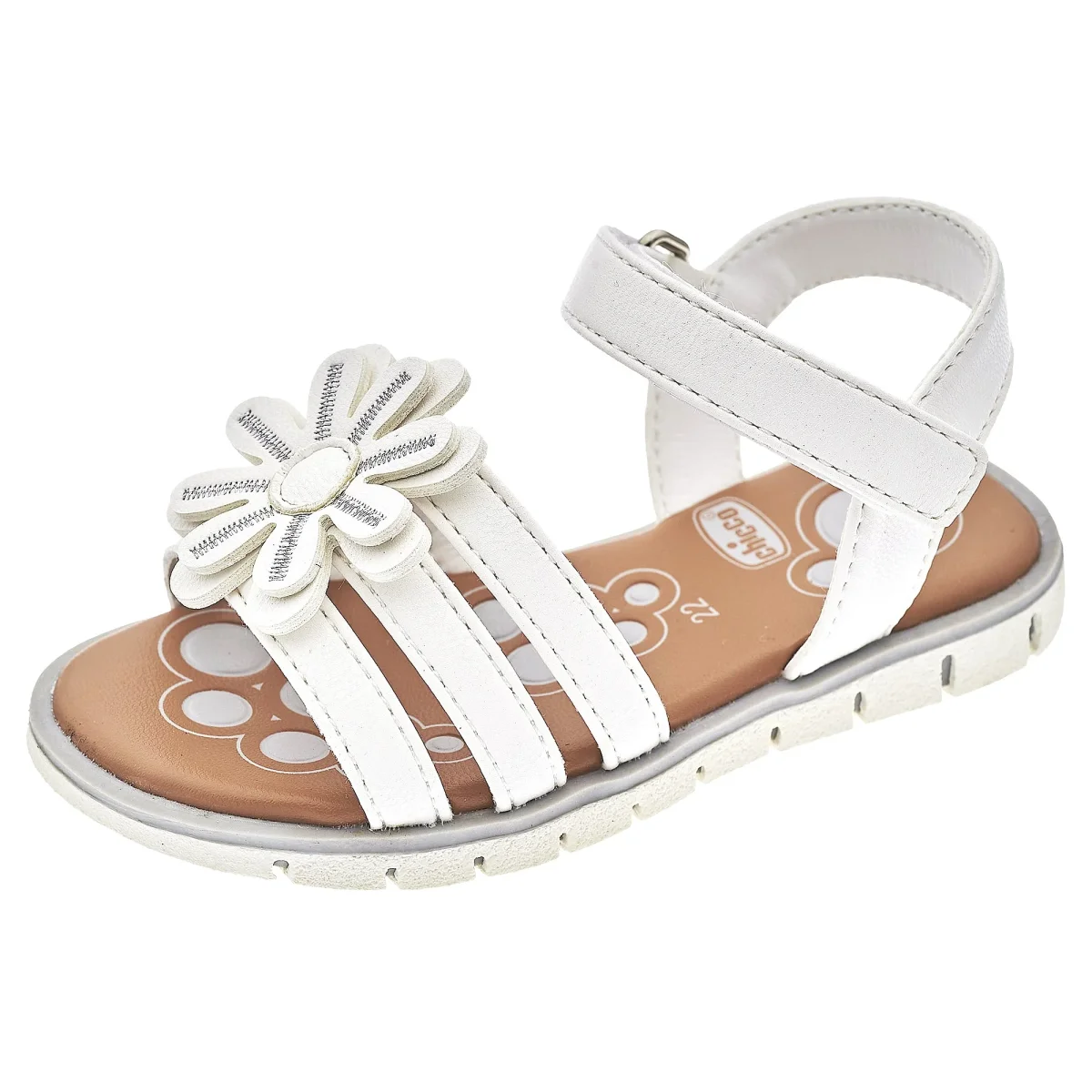 Sandali CHICCO chiusura con strappo regolabile, fiore applicato, morbido sottopiede e fondo in gomma antiscivolo.