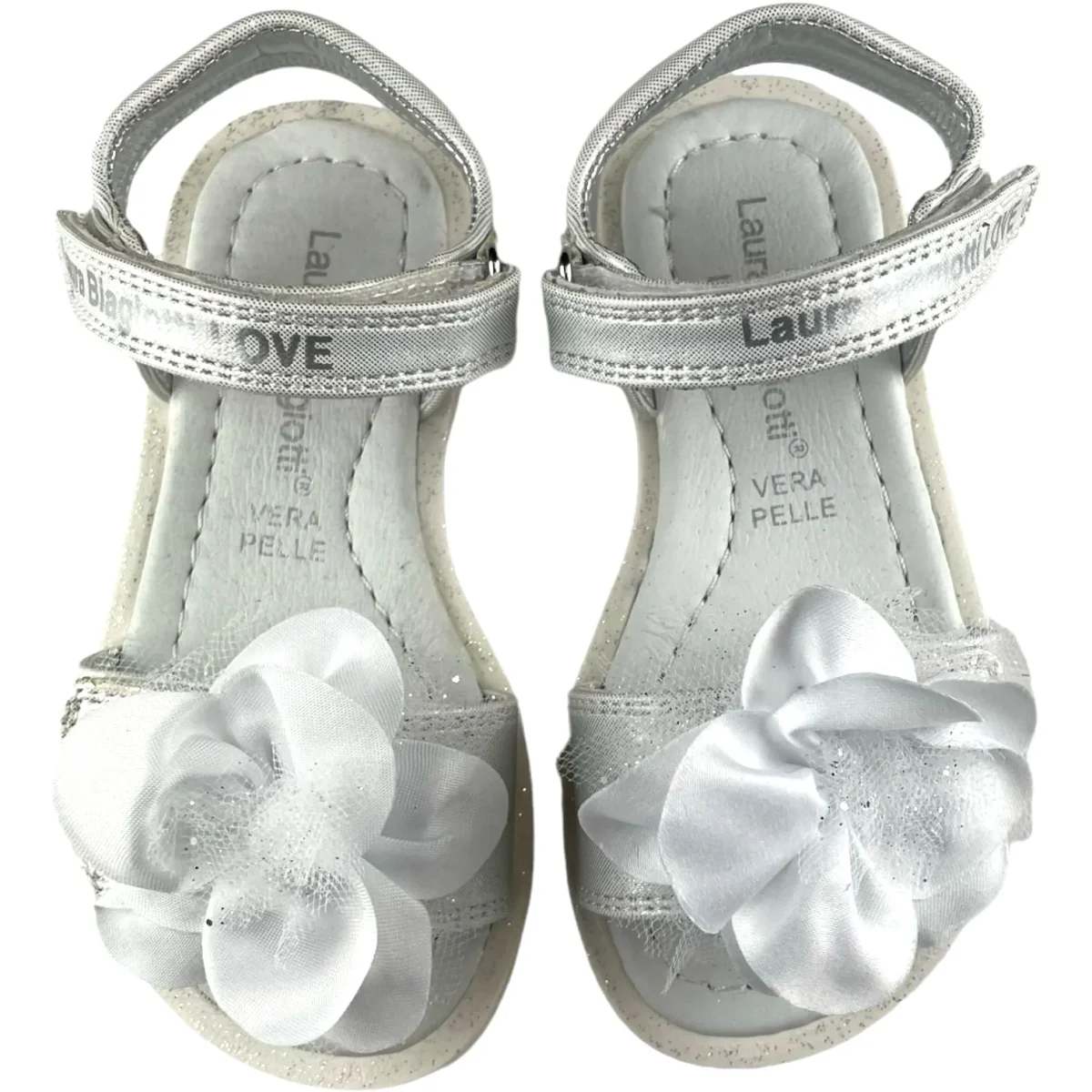 Sandali LAURA BIAGIOTTI chiusura con doppio strappo regolabile, sottopiede in vera pelle. fondo in gomma antiscivolo.