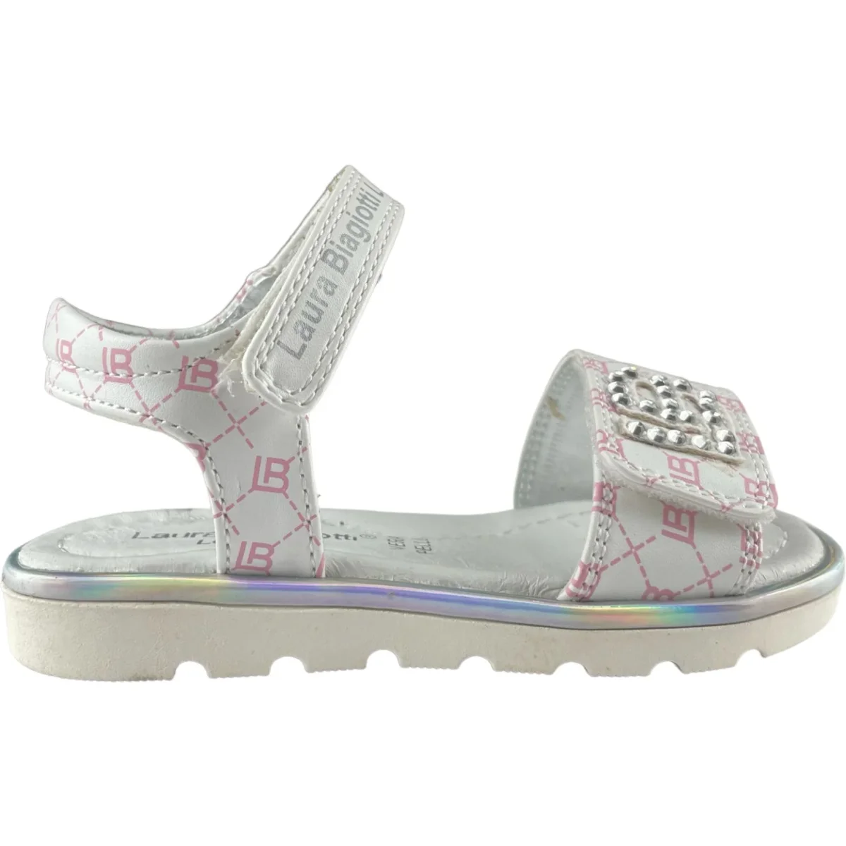 Sandali LAURA BIAGIOTTI chiusura con doppio strappo regolabile, sottopiede in vera pelle. fondo in gomma antiscivolo.