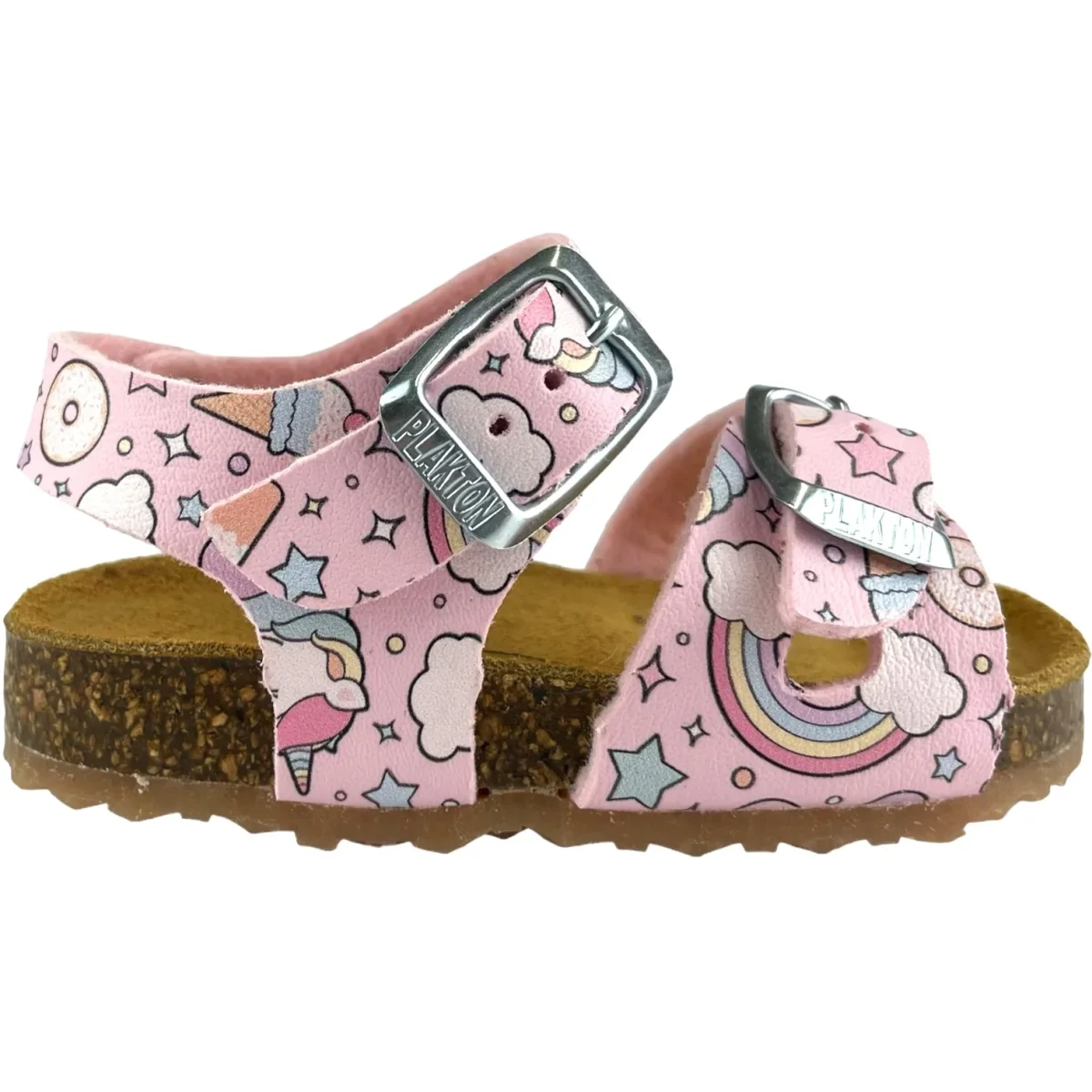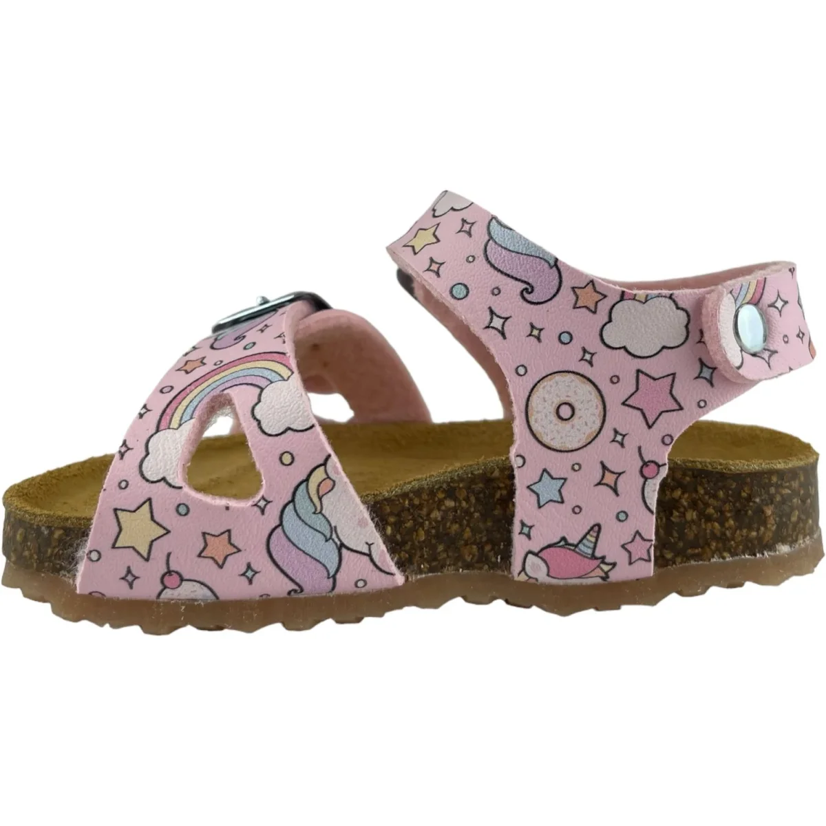 Sandali PLAKTON per bambina a fantasia unicorni, chiusura con doppia fibbia regolabile. sottopiede in vera pelle. fondo antiscivolo. MADE IN SPAIN