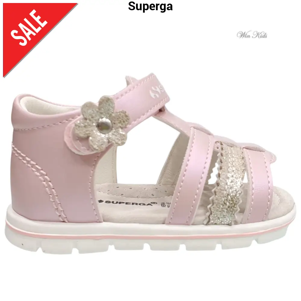 Sandali SUPERGA primi passi in ecopelle con chiusura con velcro , sotto piede in vera pelle fondo in gomma antiscivolo e flessibile.