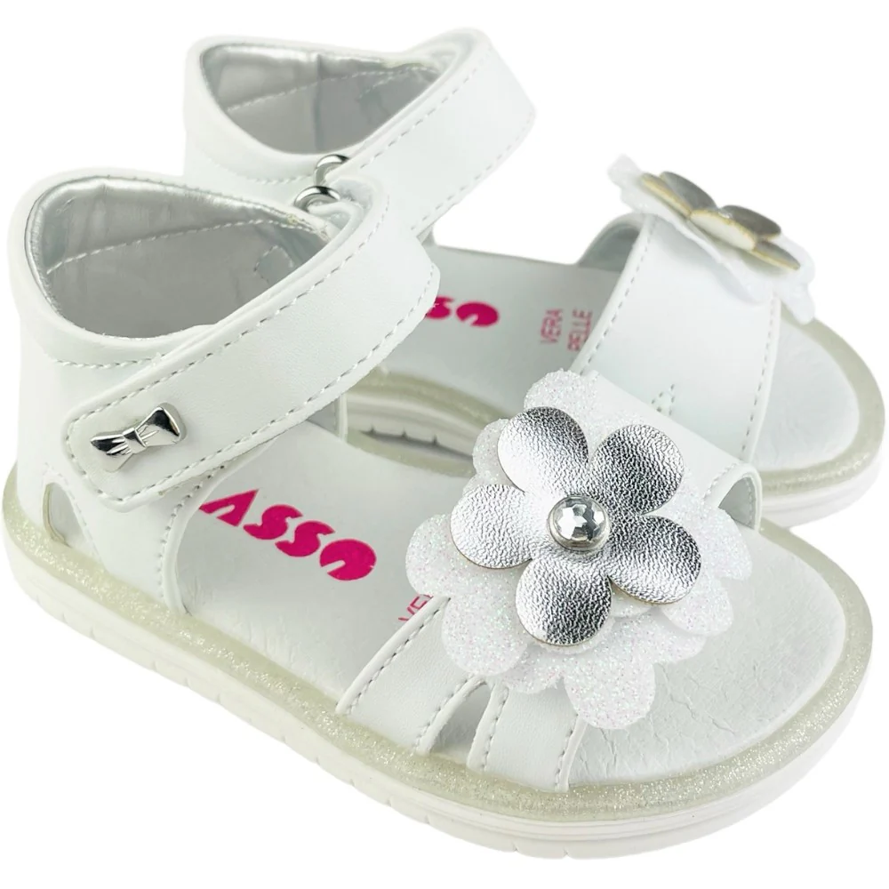 Sandalo ASSO chiusura con doppio velcro regolabile applicazione a contrasto. sottopiede in vera pelle con fondo in gomma antiscivolo.