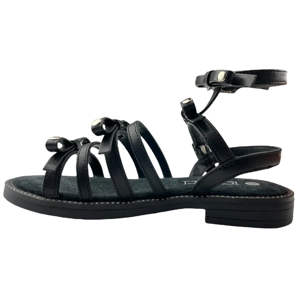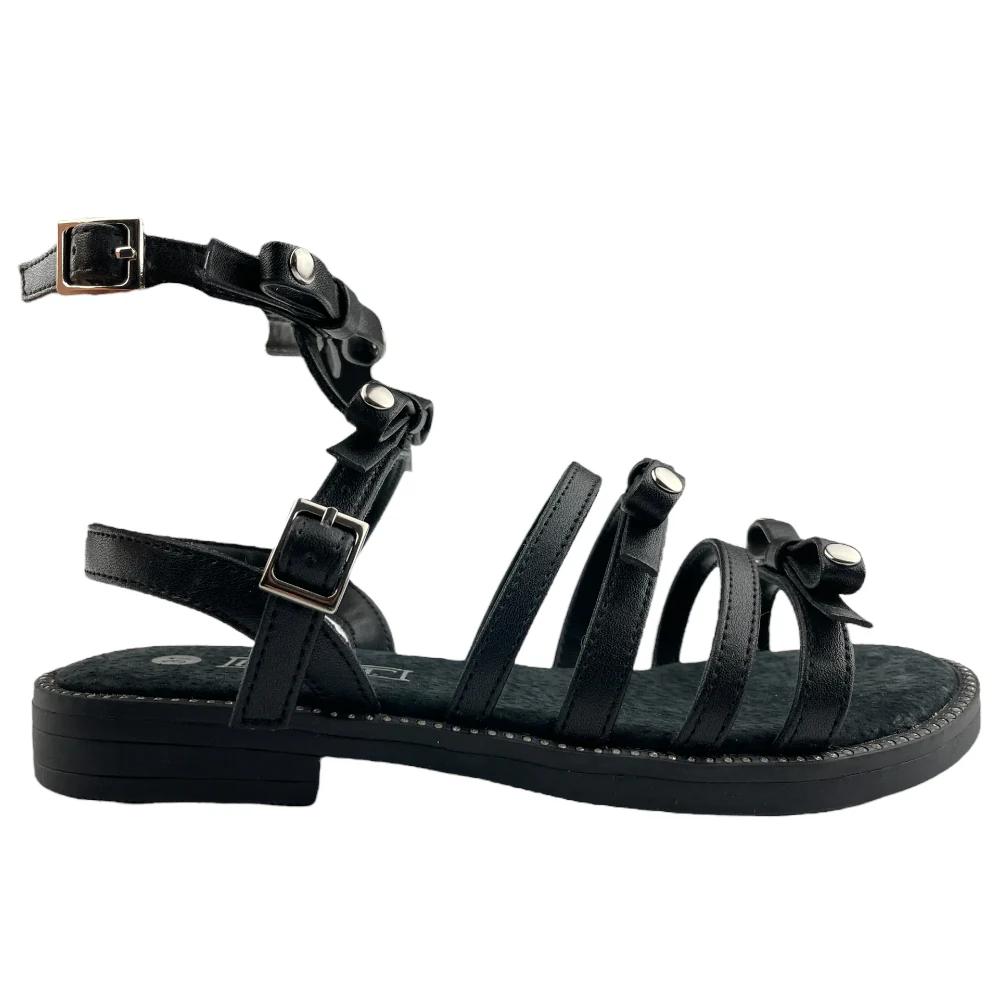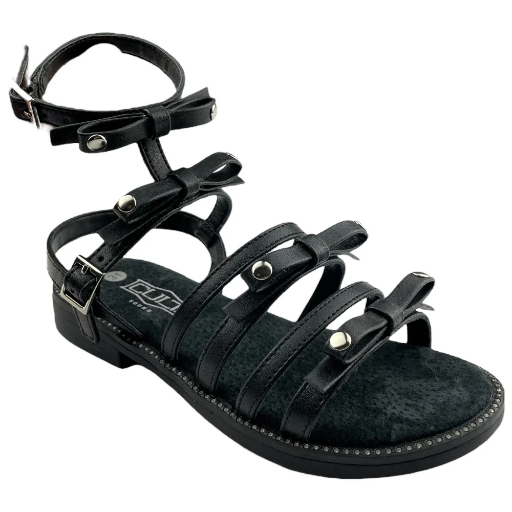 Sandalo CULT chiusura con fibbia regolabile applicazioni di fiocchi e borchie. fondo in gomma antiscivolo.