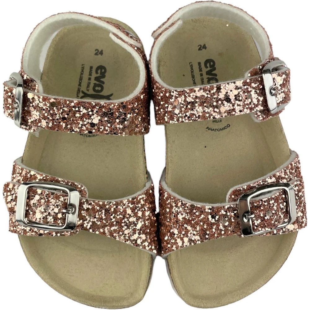 Sandalo EVOCA chiusura con doppio velcro regolabile sottopiede in vera pelle anatomico fondo in gomma antiscivolo.