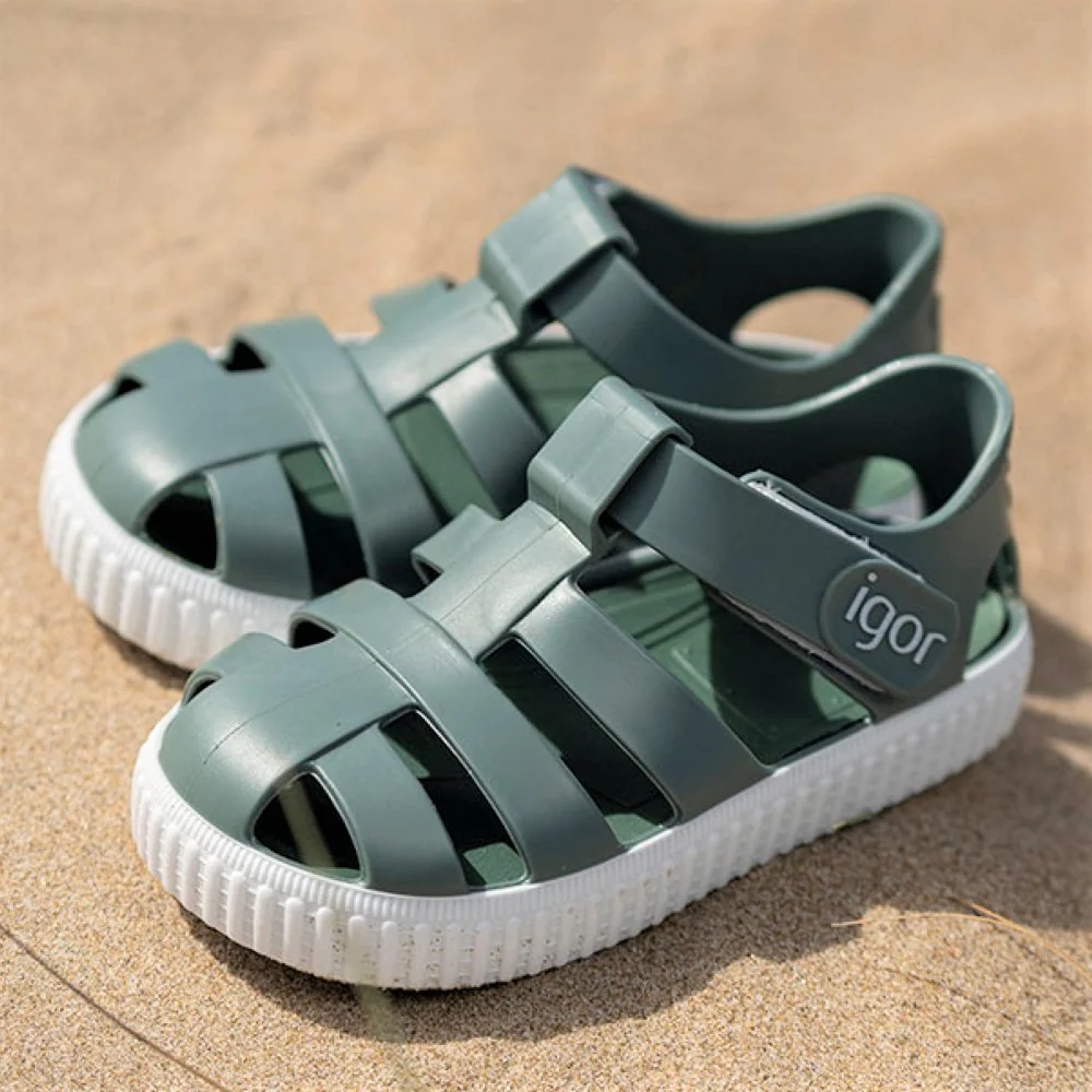 Sandalo IGOR con chiusura velcro e sottopiede anatomico estraibile fondo in gomma antiscivolo.MADE IN SPAIN