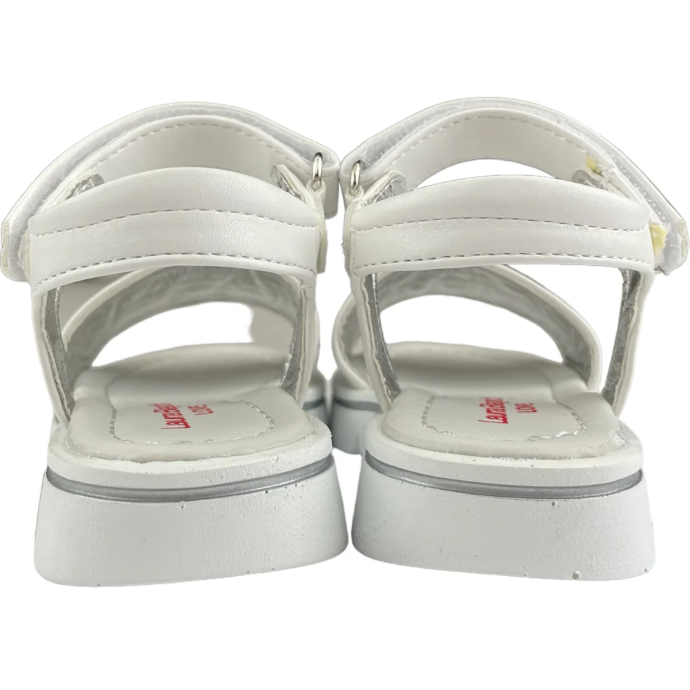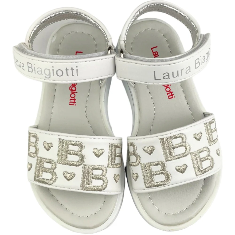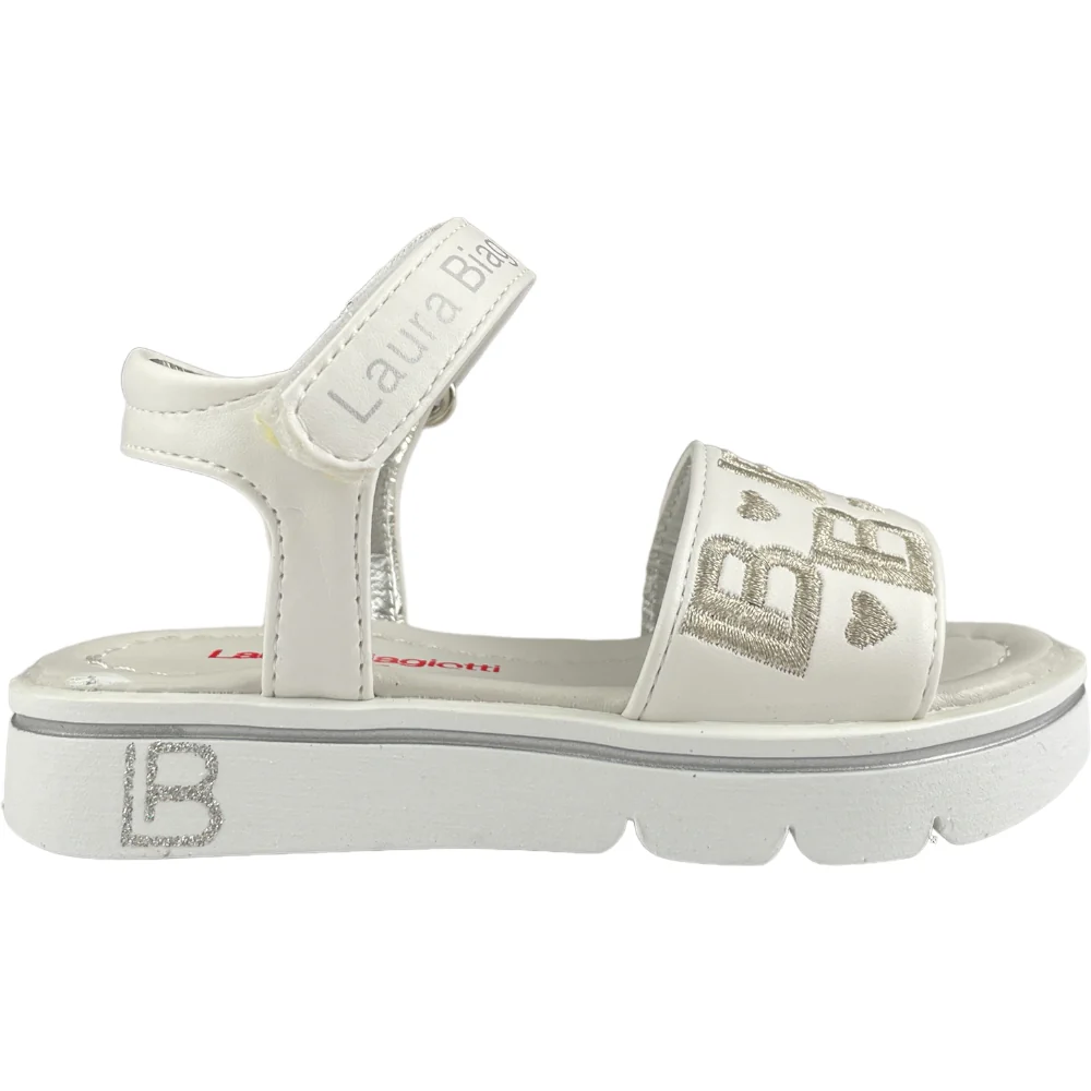 Sandalo LAURA BIAGIOTTI chiusura con velcro regolabile logo LB ricamato a contrasto sottopiede in vera pelle. fondo in gomma antiscivolo.
