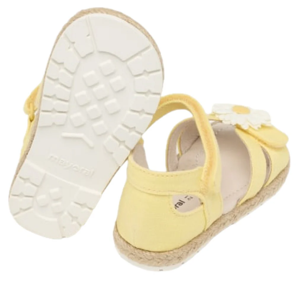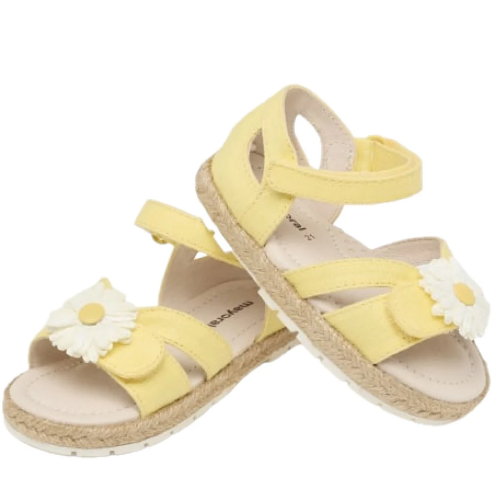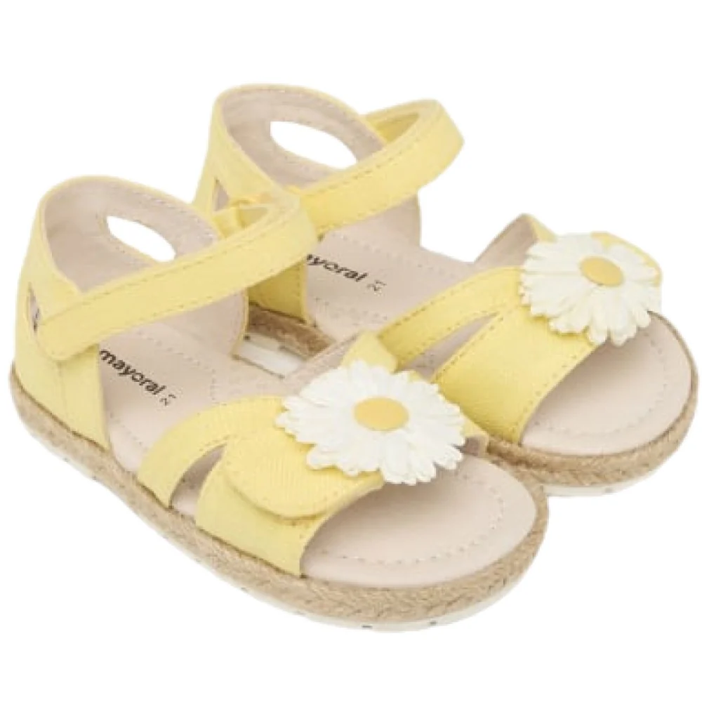Sandalo MAYORAL con chiusura doppio velcro regolabile fiore applicato fodera interna e soletta in pelle fondo in gomma antiscivolo e flessibile.Composizione