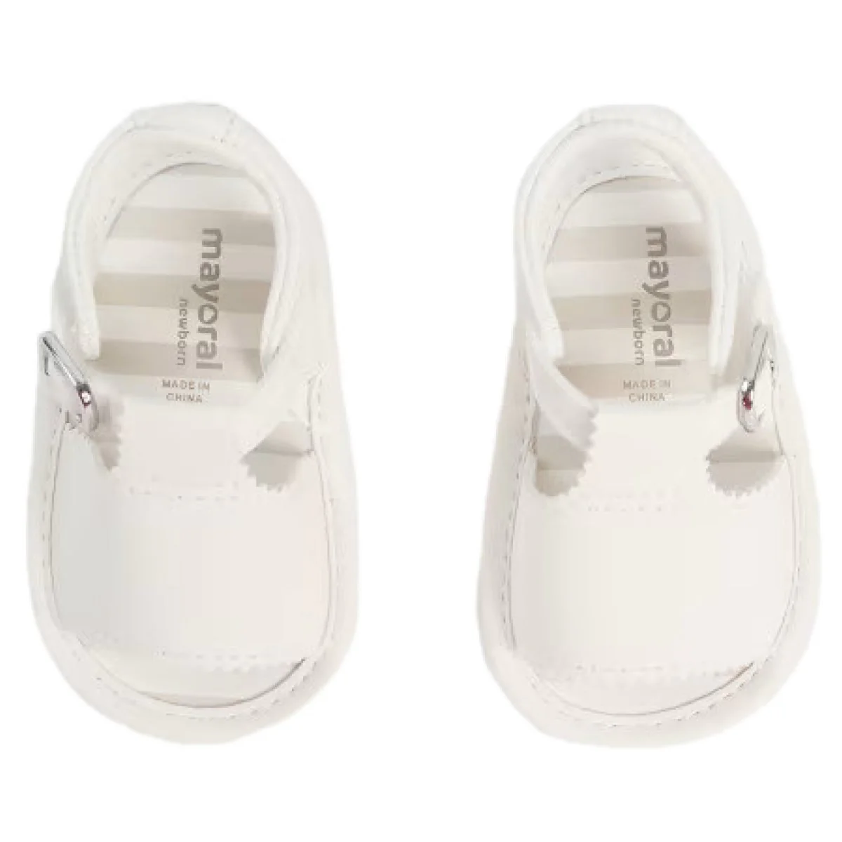 Sandalo MAYORAL linea culla in ecopelle con chiusura velcro, logo applicato sul retro.