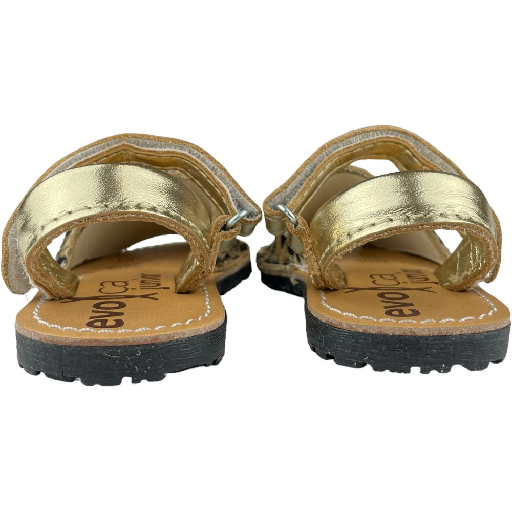 Sandalo minorchina EVOCA con parte a fantasia chiusura con cinturino regolabile. sottopiede in vera pelle. fondo flessibile in gomma antiscivolo.