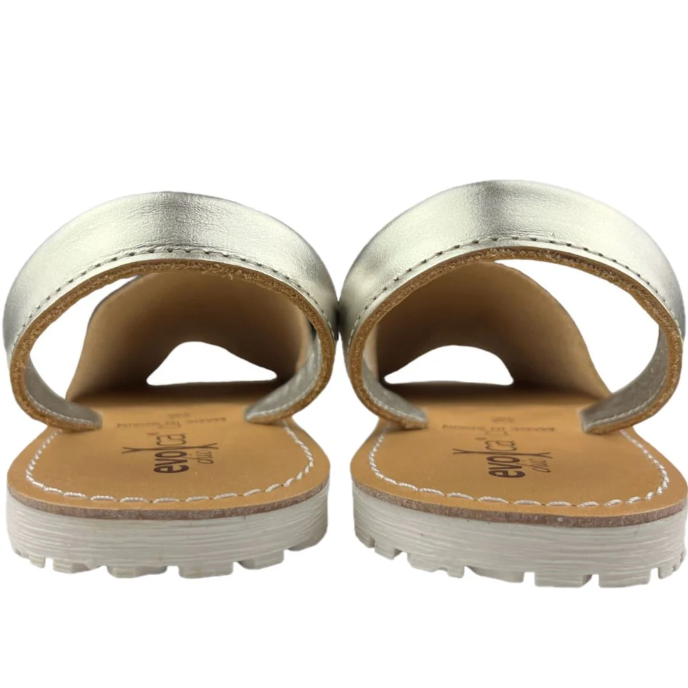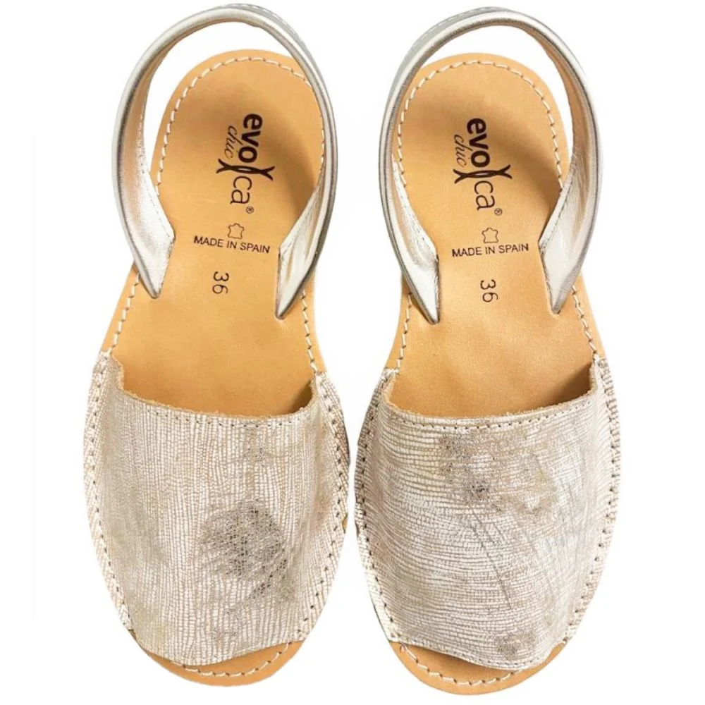 Sandalo minorchina EVOCA champagne sottopiede in vera pelle fondo in gomma flessibile e antiscivolo.