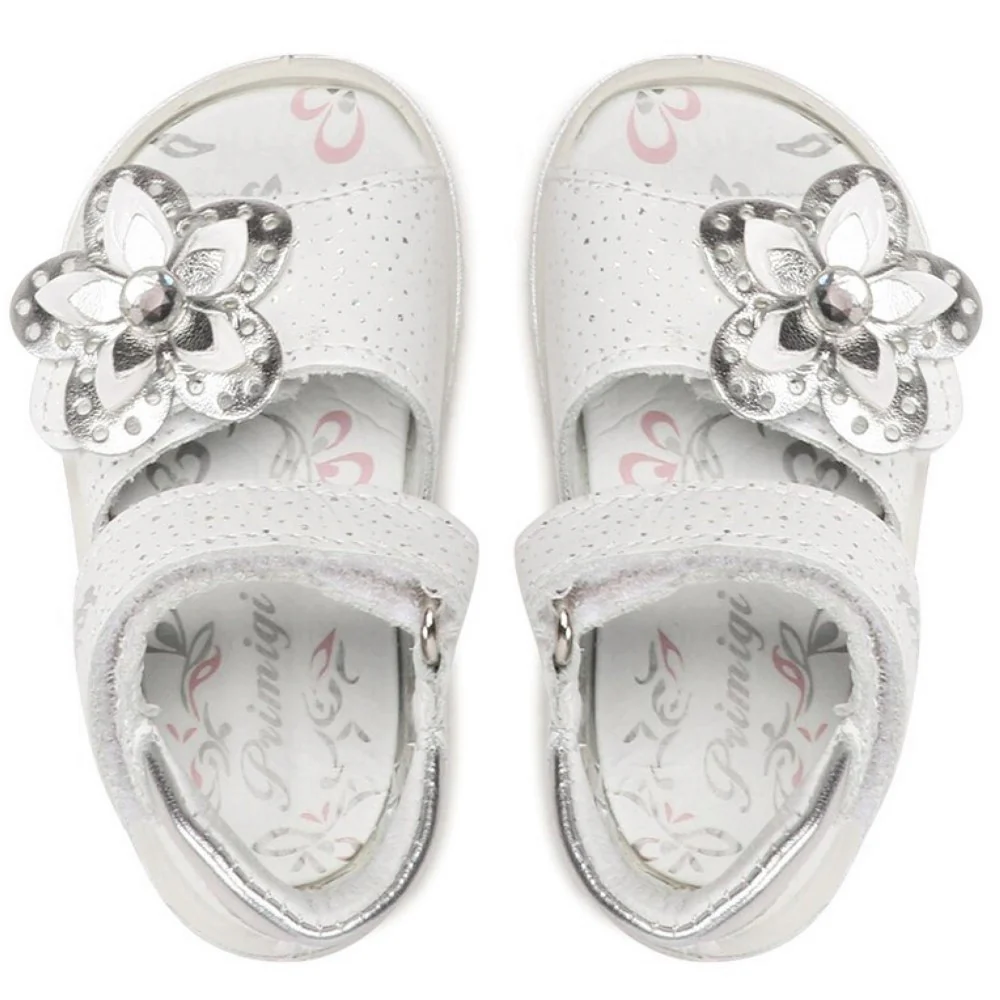 Sandalo PRIMIGI primi passi in vera pelle a fantasia chiusura con doppio velcro fodera e sottopiede in vera pelle fondo in gomma antiscivolo e flessibile.