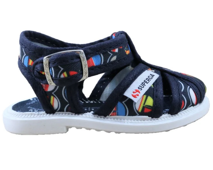 Sandalo SUPERGA in tessuto a fantasia modello chiuso avanti. chiusura con clips laterale regolabile. fondo in gomma antiscivolo.MADE IN ITALY
