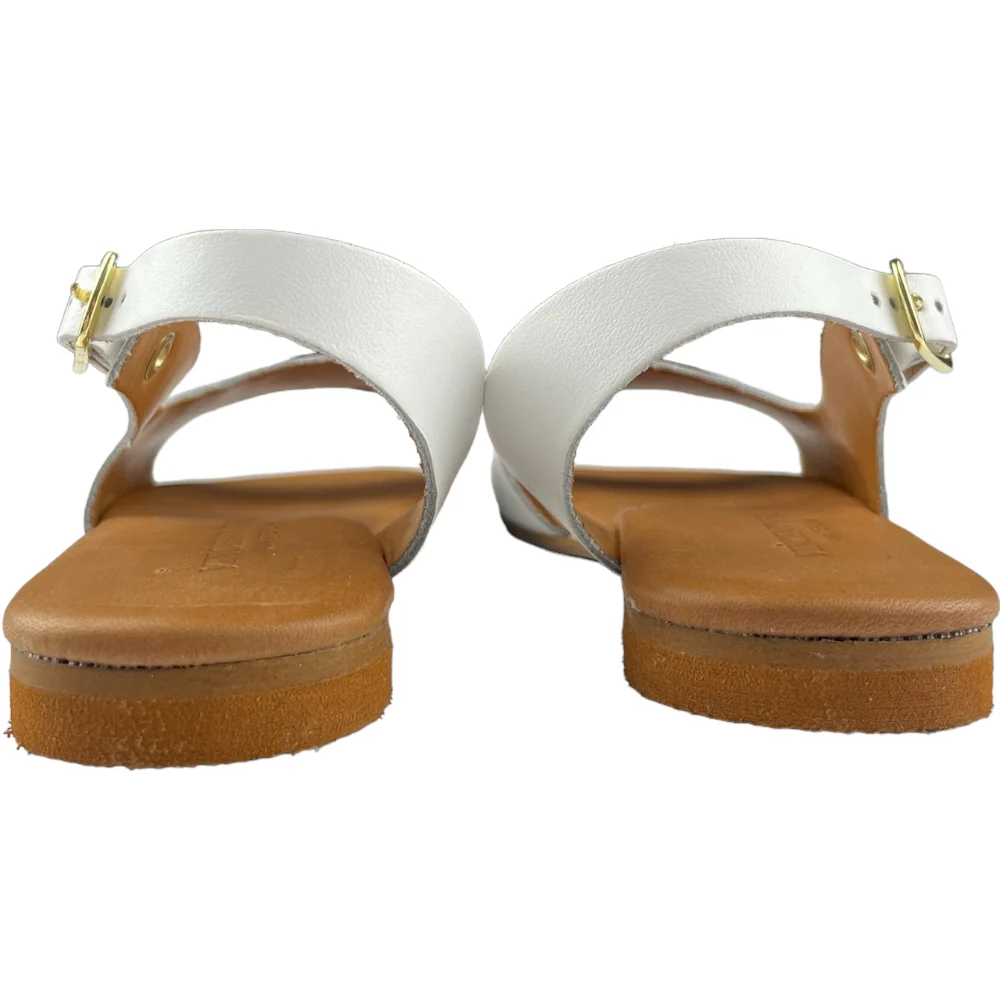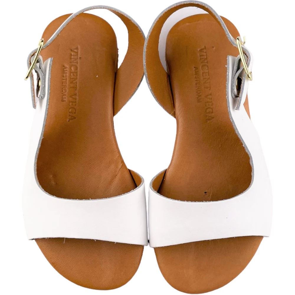 Sandalo VINCENT VEGA in pelle bianca chiusura con fibbia regolabile. sottopiede in vera pelle. fondo in vero cuoi ecologico antiscivolo.MADE IN ITALY