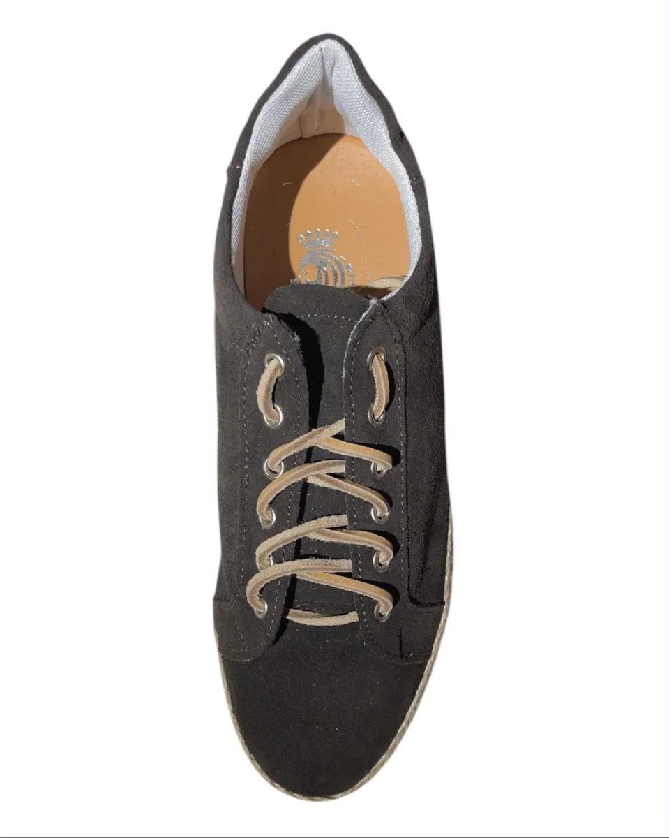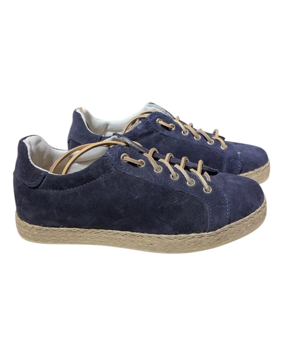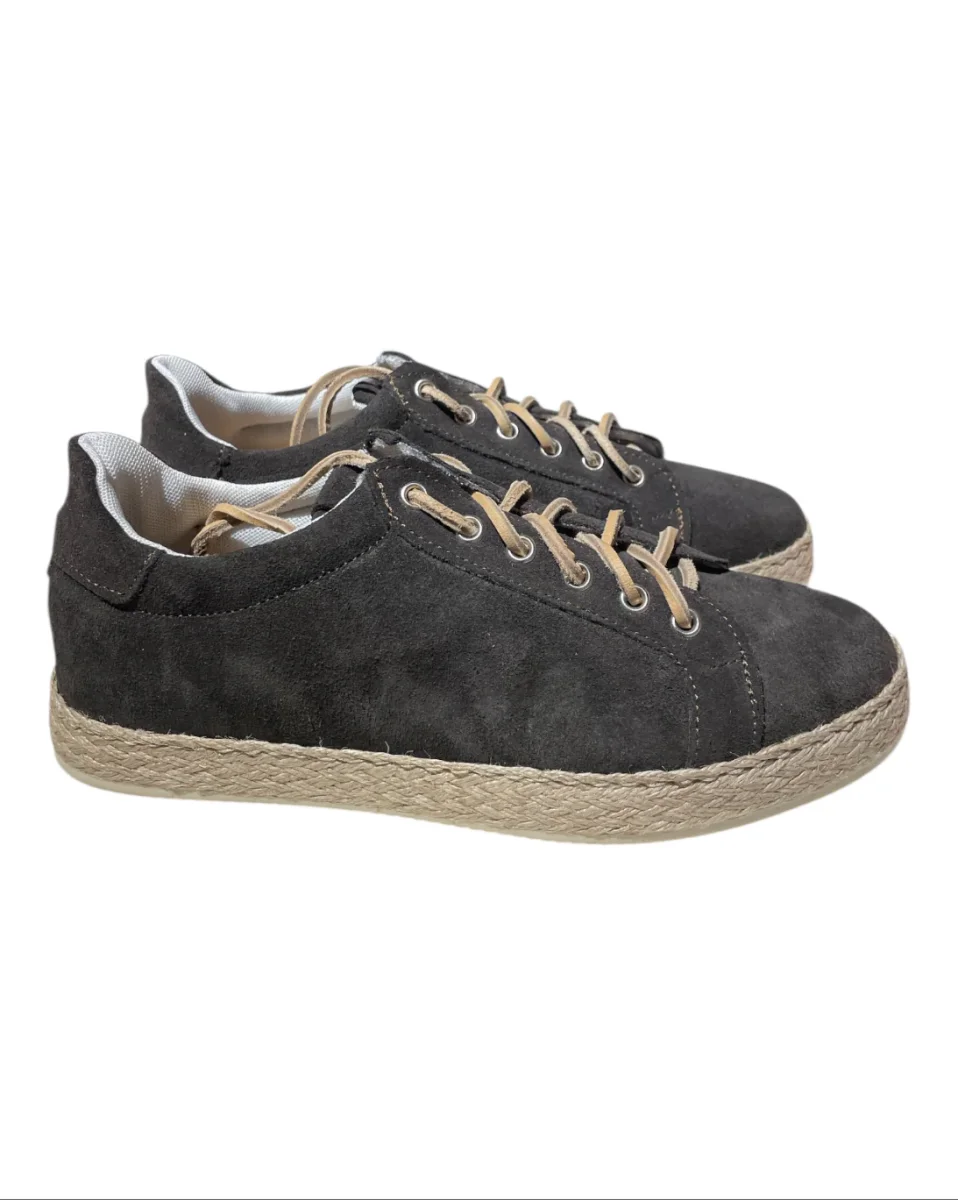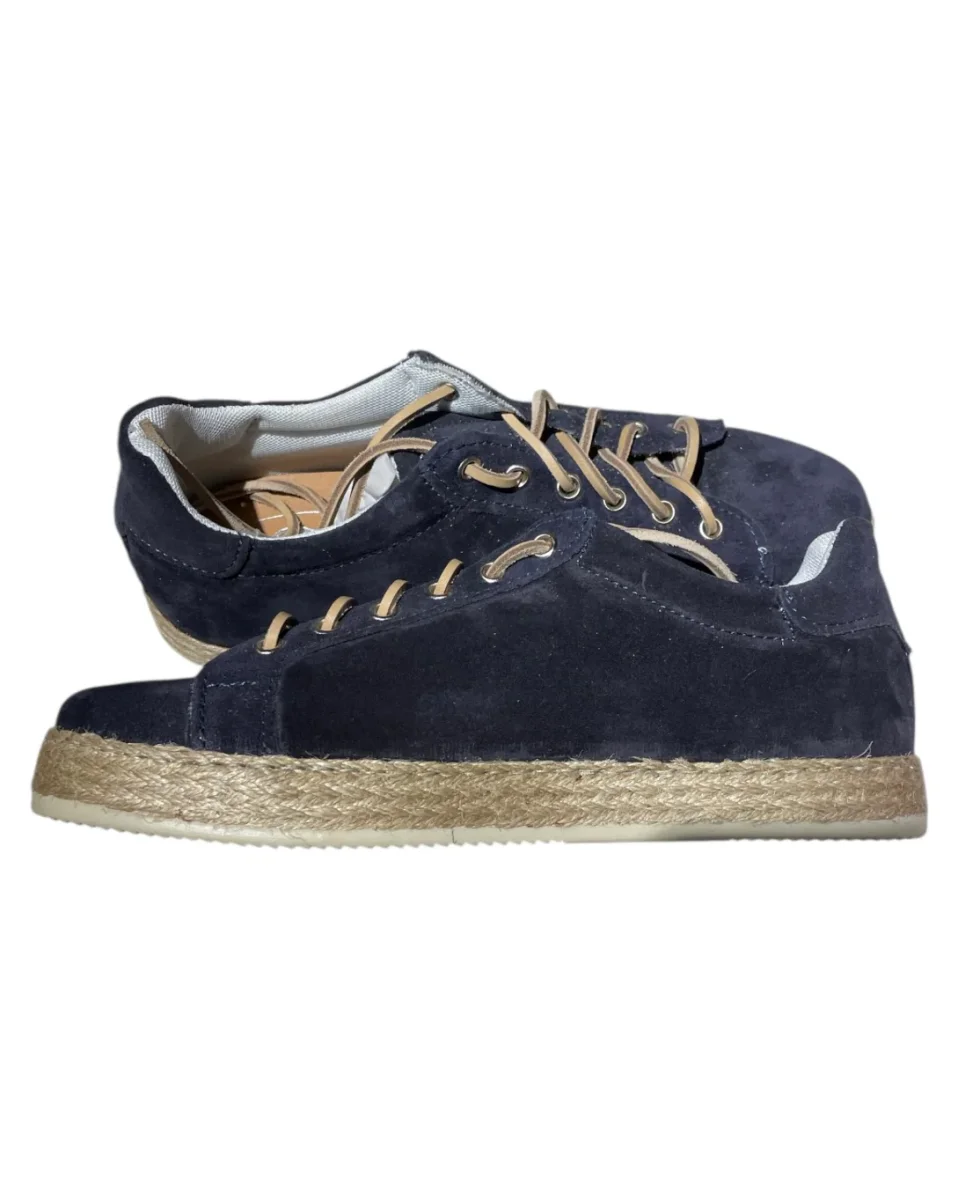 Scarpa uomo modello sneakers in pelle scamosciata con para in rafia. Calzata regolare.