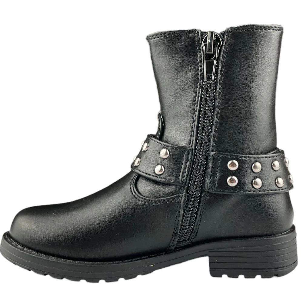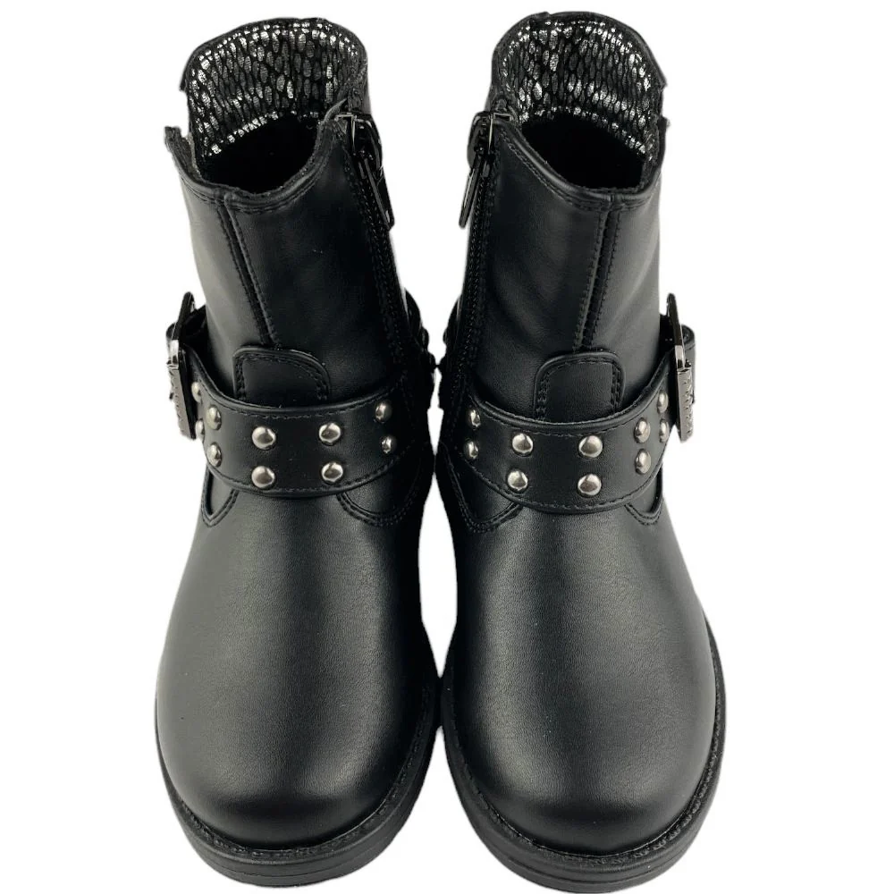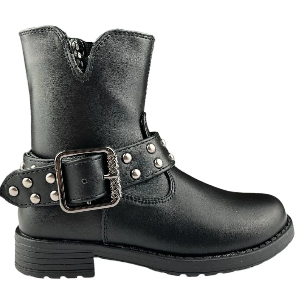 Stivaletto ASSO apertura con zip laterale. borchie applicate a contrasto. fondo in gomma antiscivolo.
