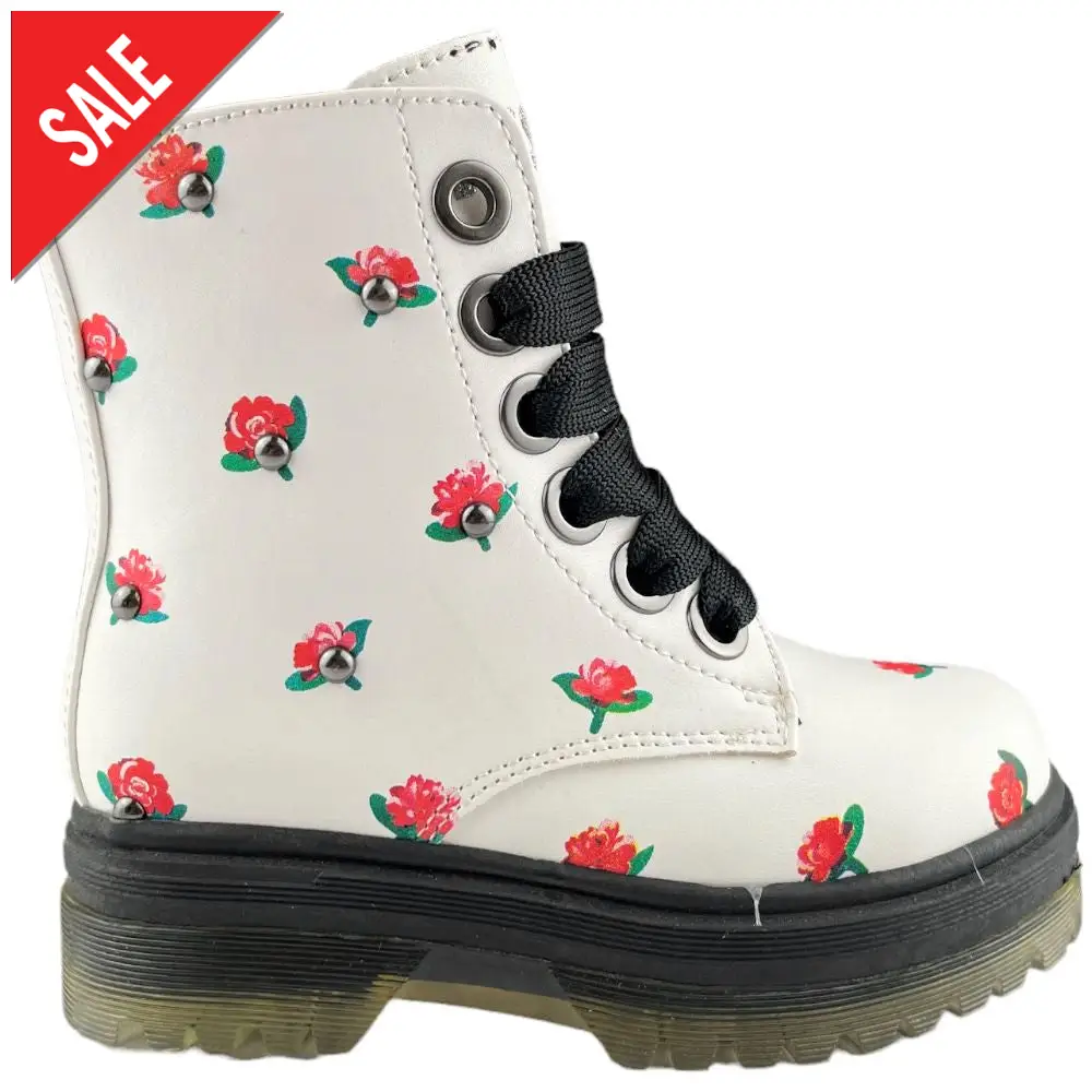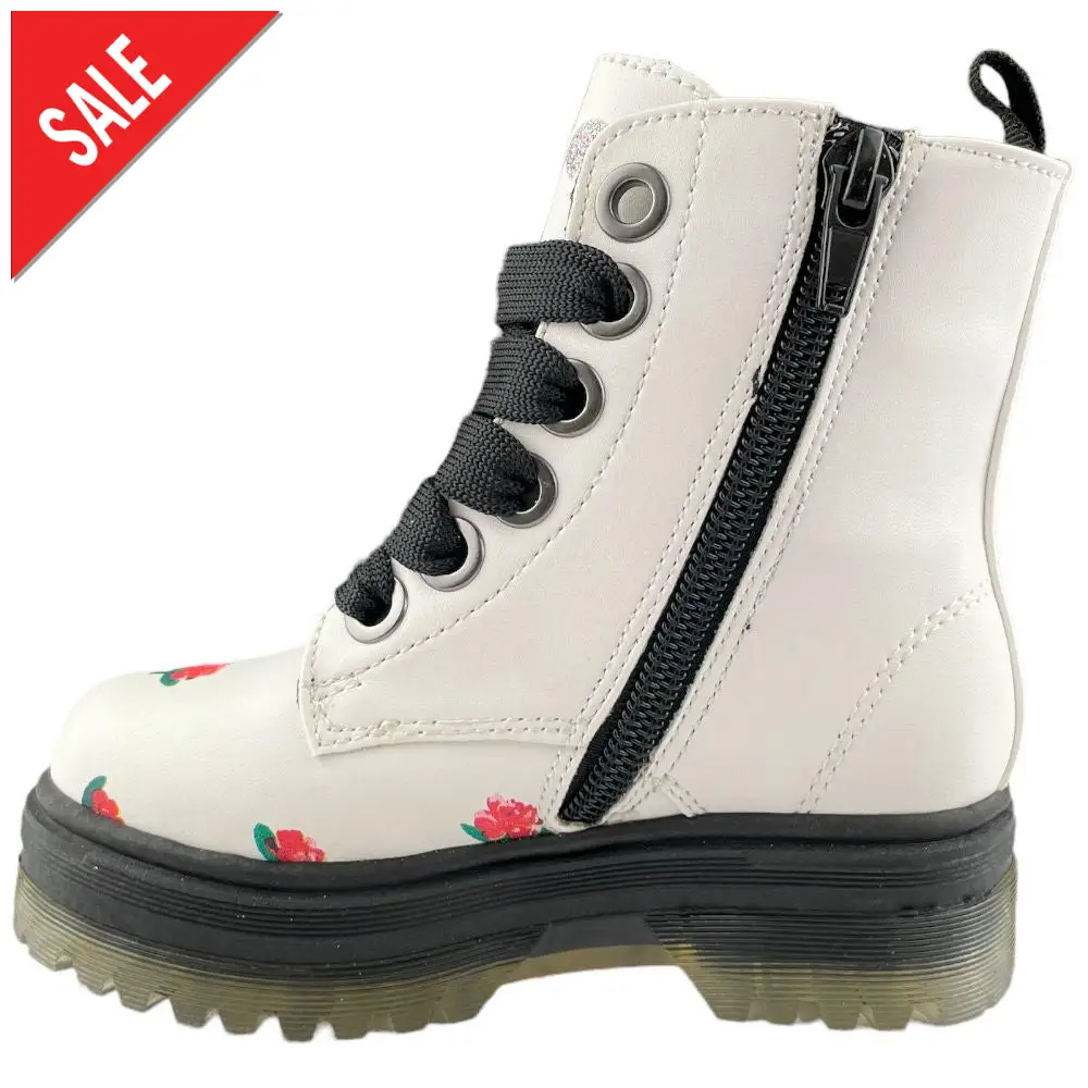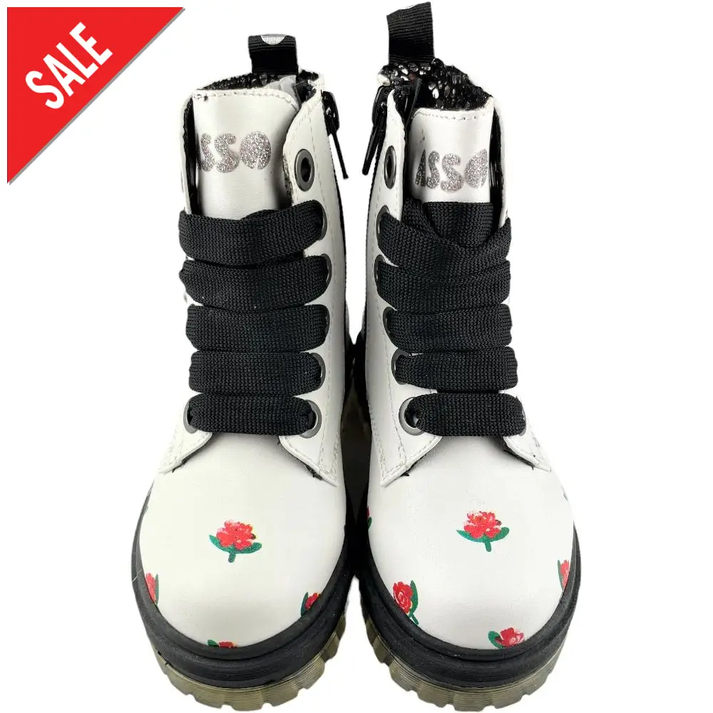 Anfibio ASSO bianco a fantasia chiusura con lacci e zip laterale per facilitare la calzata. fondo in gomma antiscivolo.
