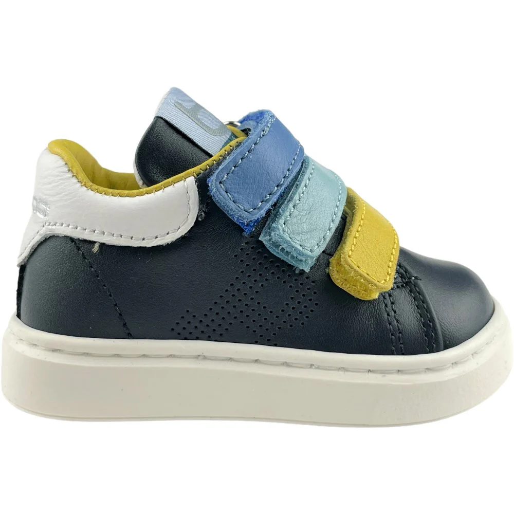 Scarpa BALDUCCI blu chiusura triplo velcro regolabile multi color fodera e sottopiede anatomico in vera pelle. fondo in gomma antiscivolo. ottima per primi passi.MADE IN ITALY