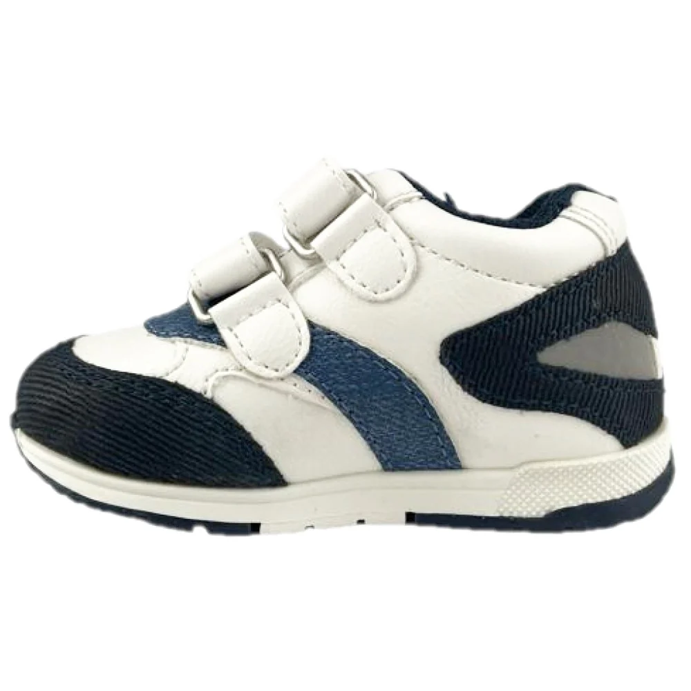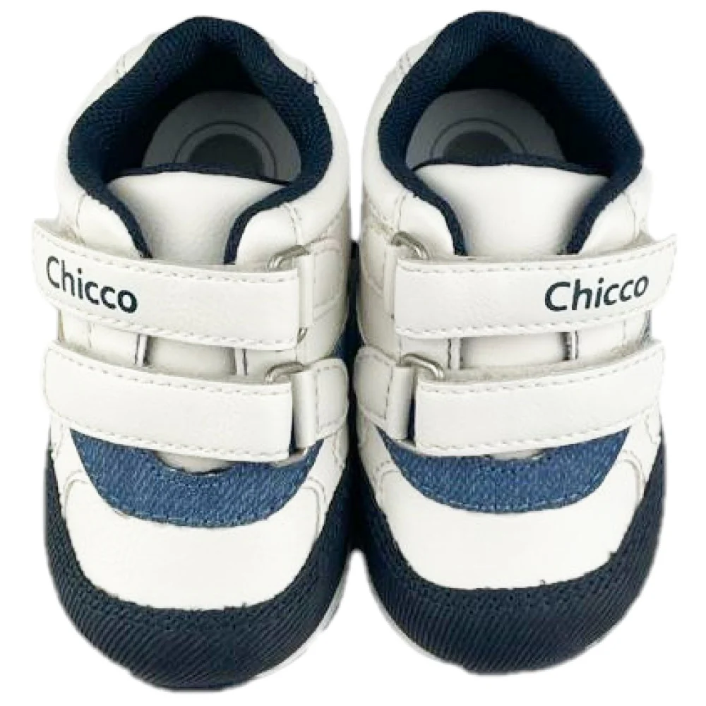 Scarpa CHICCO linea primi passi in ecopelle chiusura con doppio velcro regolabile con logo stampato fondo leggero e flessibile in gomma antiscivolo.