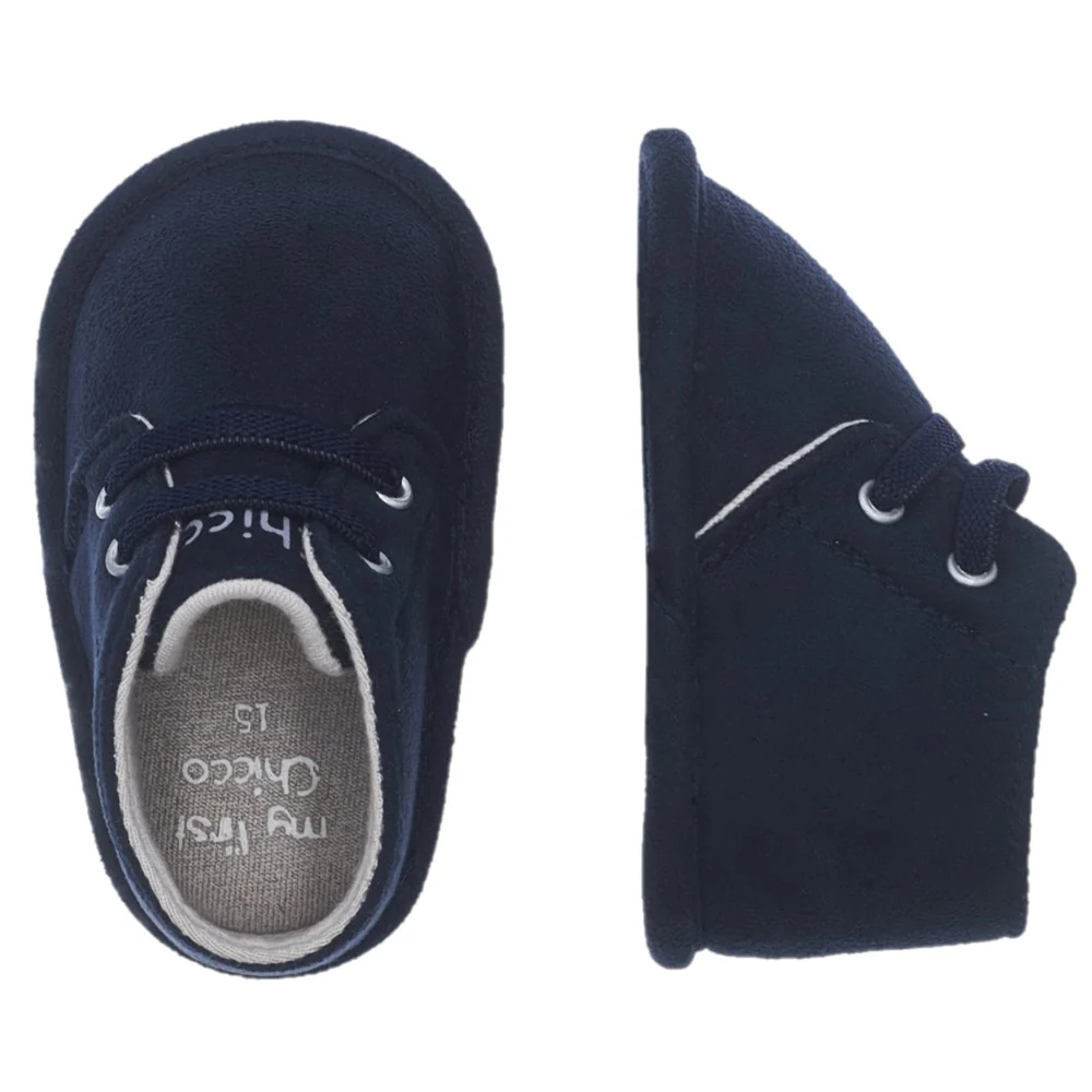Scarpa CHICCO modello polacchina in tessuto con lacci elastici. Modello da culla.