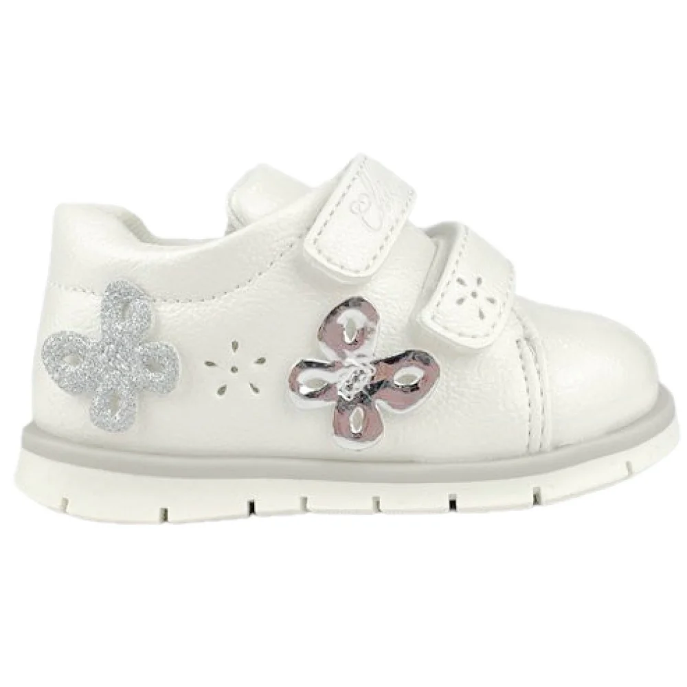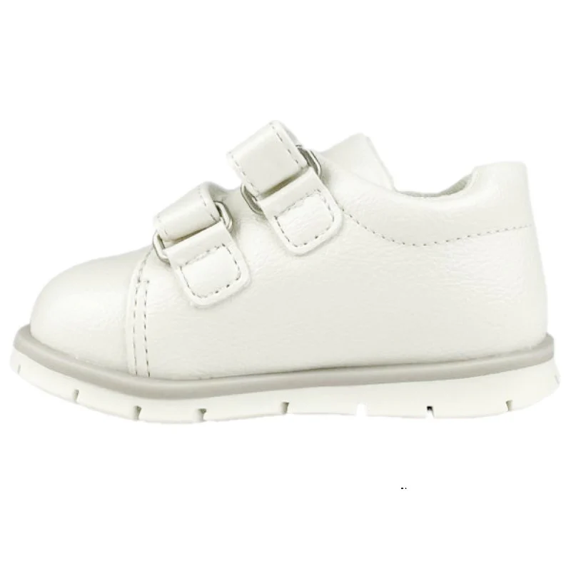 Scarpa CHICCO linea primi passi in ecopelle con applicazioni a contrasto chiusura con doppio velcro regolabile fondo leggero e flessibile in gomma antiscivolo.