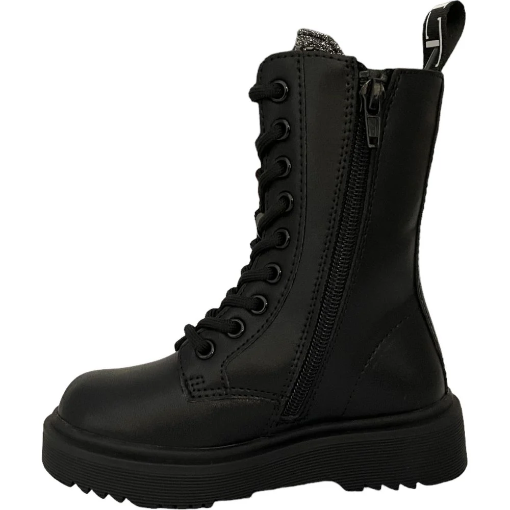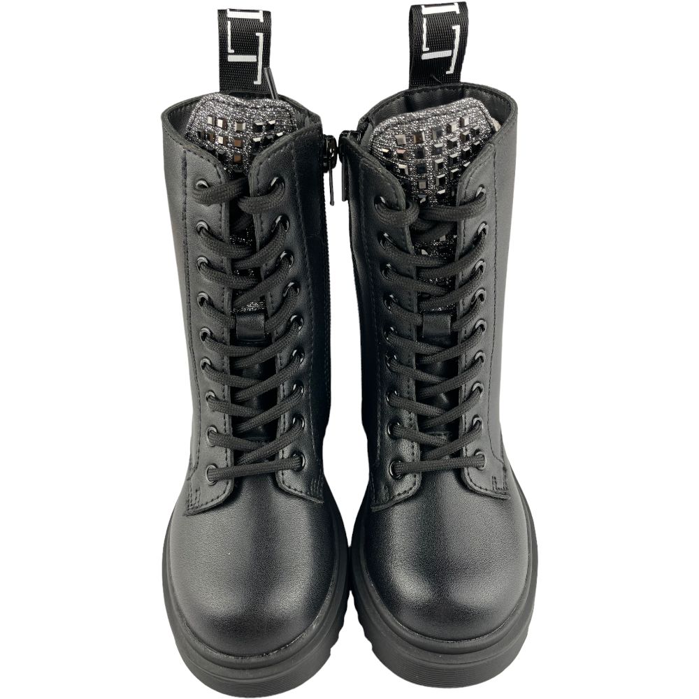 Scarpa CULT modello anfibio chiusura con lacci e zip laterale linguetta lavorata con glitter e borchie. fondo in gomma antiscivolo con logo cult