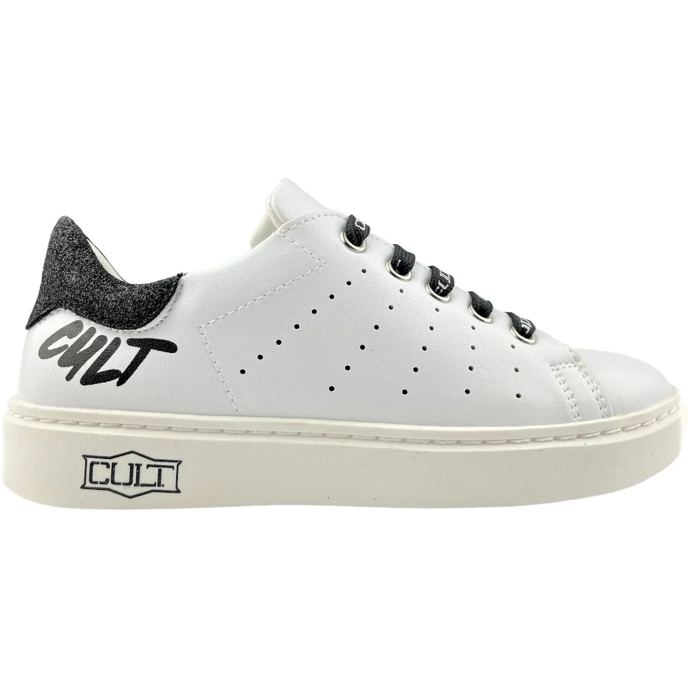 Scarpa CULT con logo laterale a contrasto chiusura con lacci logati. retro glitterato in nero. fondo in gomma antiscivolo