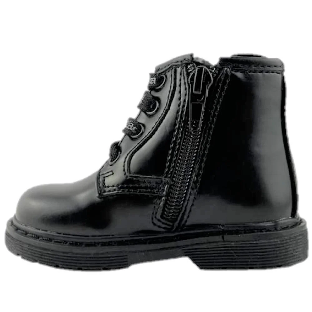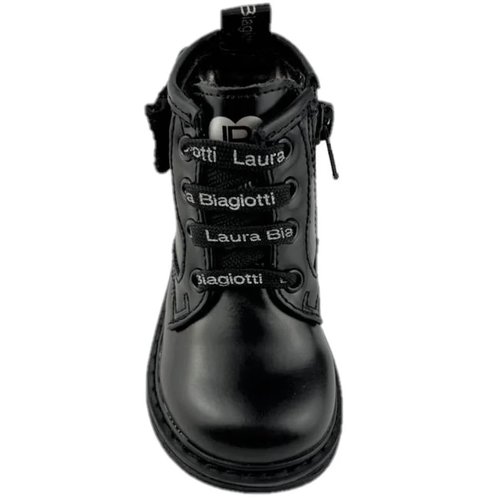 Scarpa LAURA BIAGIOTTI in ecopelle con chiusura lacci logati e zip fiocco e logo in strass applicati lateralmente sottopiede in vera pelle fondo in gomma antiscivolo .