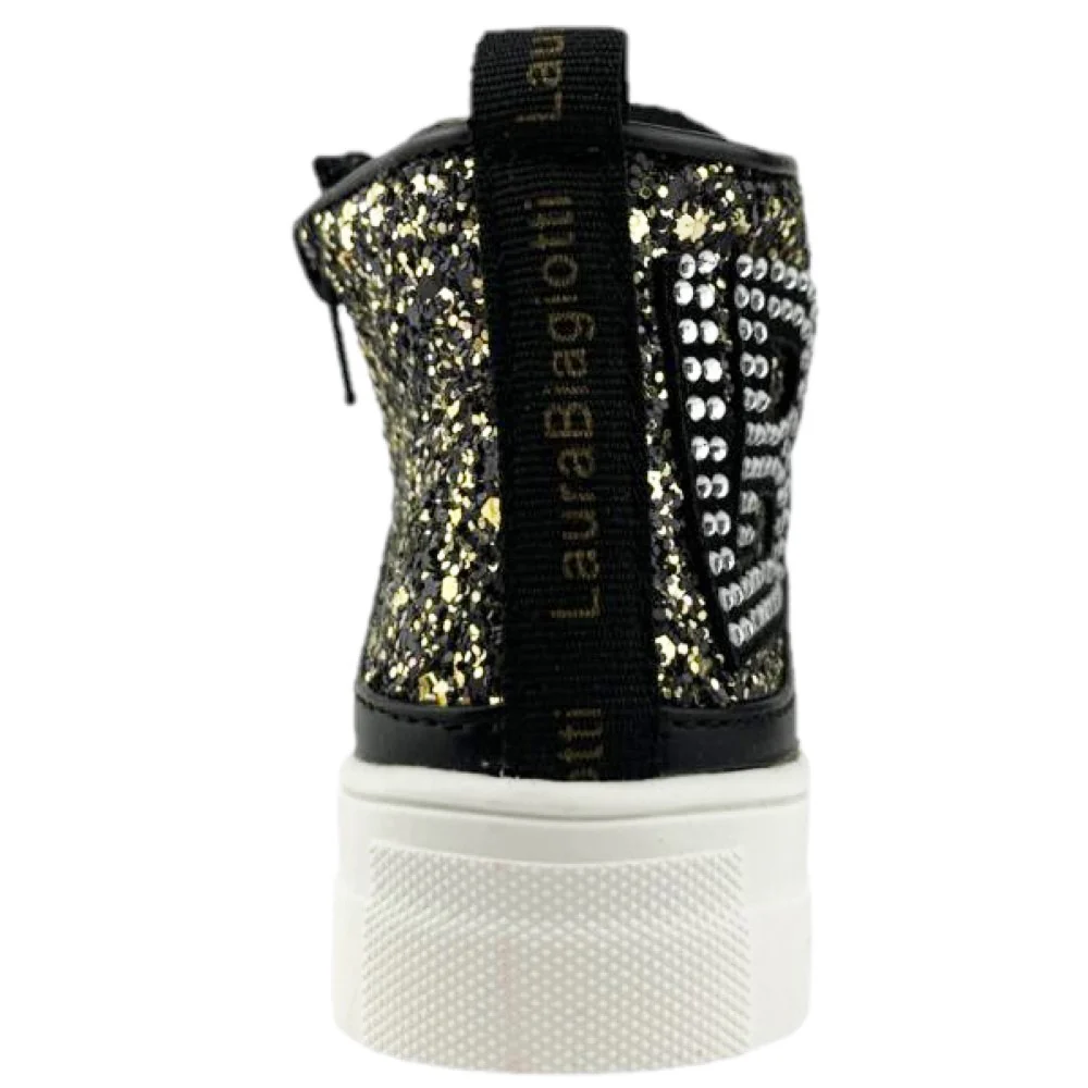 Scarpa LAURA BIAGIOTTI in ecopelle con lacci e zip laterale logo in strass e glitter logo removibile in metallo con strass applicati sl laccio sottopiede in vera pellefondo in gomma.
