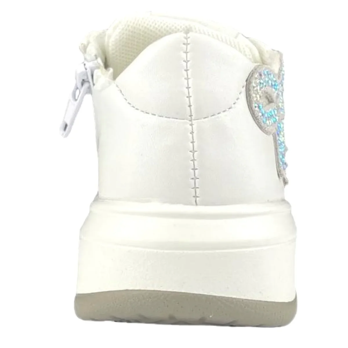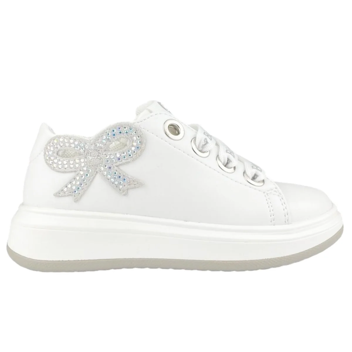 Scarpa LAURA BIAGIOTTI con chiusura con lacci logati e zip laterale, fondo in gomma antiscivolo, applicazione laterale in patch con strass.