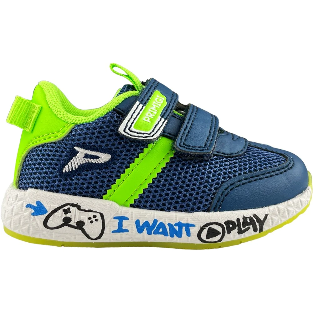 Scarpa PRIMIGI chiusura con doppio velcro regolabile ricamo e stampe a contrasto. fondo in gomma antiscivolo.